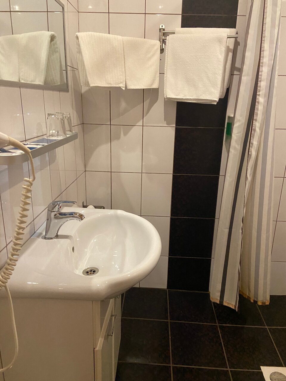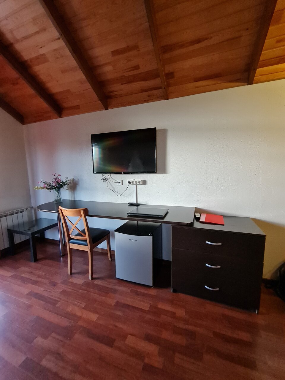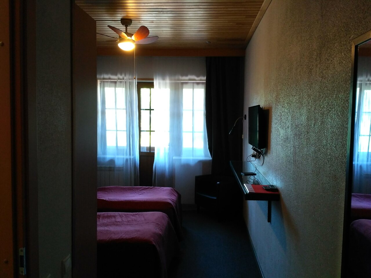 Гостиница вполне устроила. Чисто, уютно, но тесно ( номер двухкомнатный мансарда). Имейте в виду, что окна в мансарде открываются немного. Если душно, то проветрить нормально невозможно. Был вентилятор. Но он не спасал. В санузле душ без бортиков, а это значит, что всё в воде, которая уходит медленно. Но есть швабра! И у сожалению, нет кулера. Воду продают. Есть чайник, чашки, холодильник.