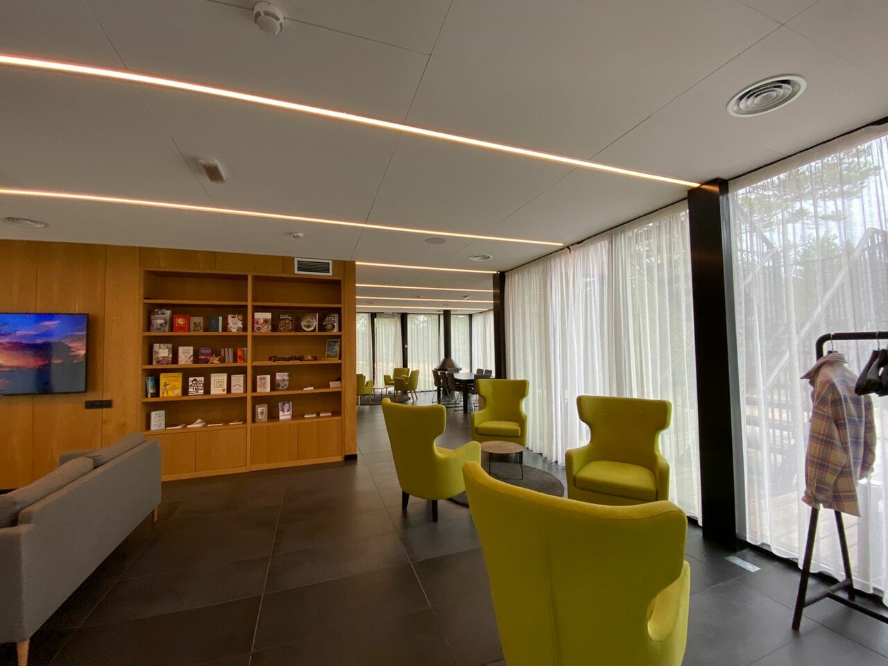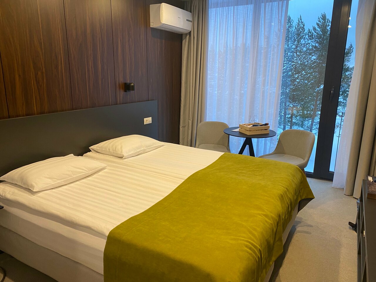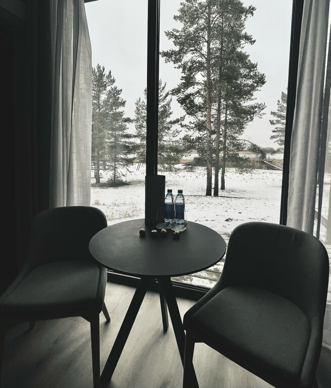 Поставила пять звёзд, потому что очень красивая территория отеля, отличное кафе и винная гостиная. Но номер стандарт в таком же отеле ‘Точка на карте’ в поселке Рюттю более удобный для проживания, потому что площадь больше. А так номера чистые. Горничные вежливые, всё делают быстро. В номерах стандарт есть капсульные кофемашины, что тоже очень понравилось (далеко не во всех отелях они есть в номерах). Не понравилось, что при заселении пришлось бегать вокруг поста охраны (дверь закрыта, окна тоже), чтобы шлагбаум подняли. Сотрудники не вышли, разговор вели через закрытое окно. Не гостеприимно получается.