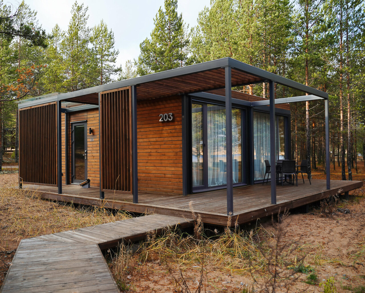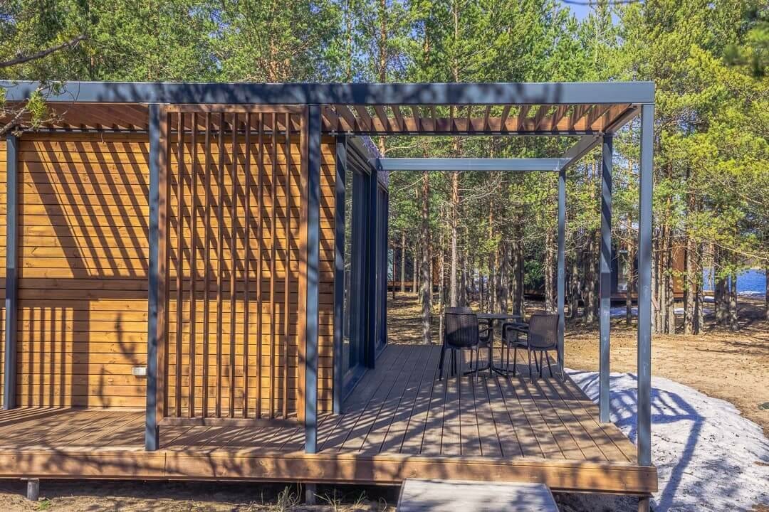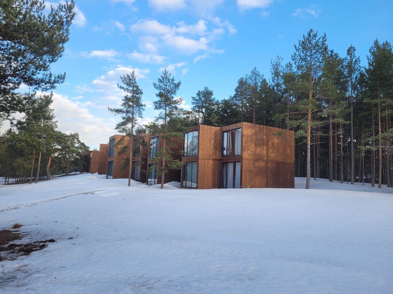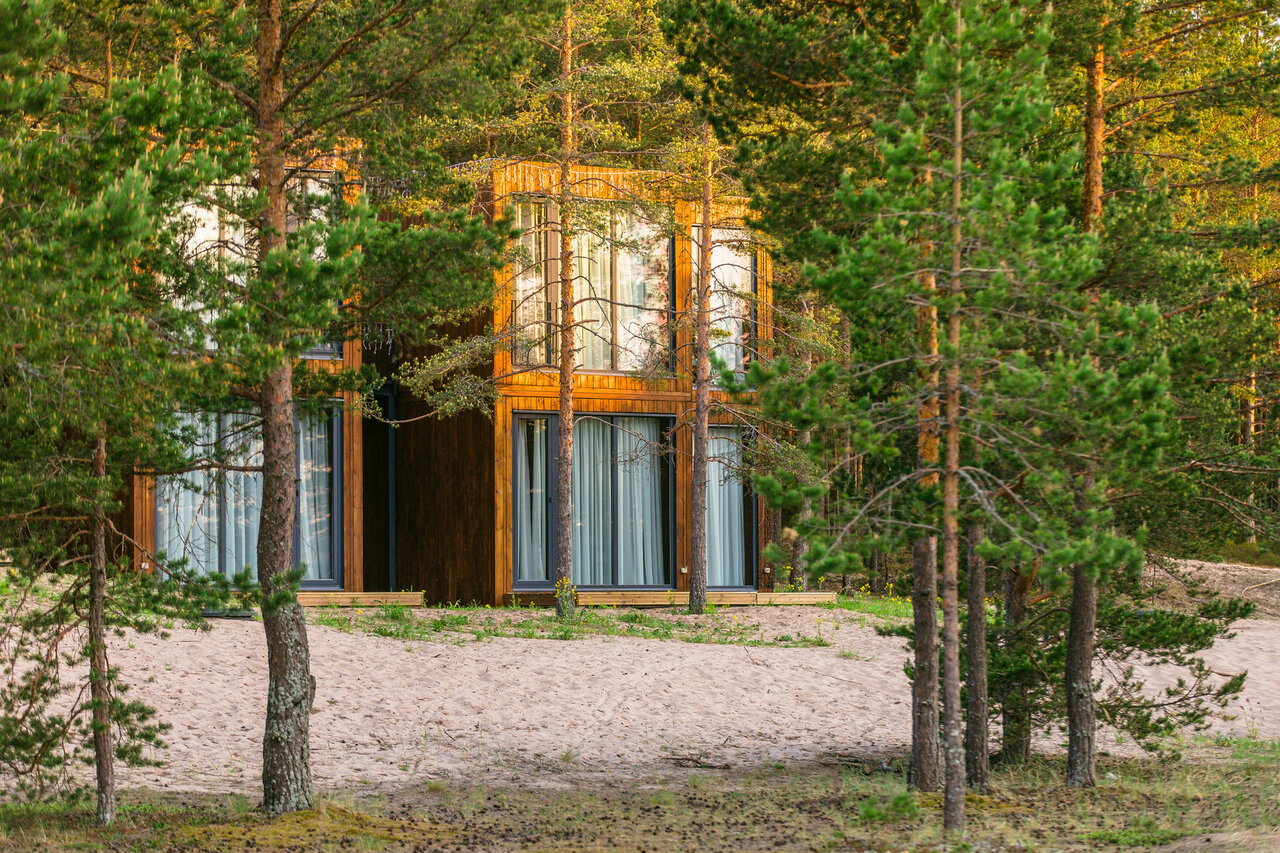 Отдыхали в сентябре 2023 и все очень понравилось. Расположение вдали от магистралей, в лесу. Потрясающий вид на Ладожское озеро. Домики выполнены в интересном стиле, а винная гостиная потрясающе смотрится как снаружи так и внутри. На территории и за ней много места в где погулять. Блюда в ресторане достойны своих цен, очень вкусно. Отдельное спасибо за прогулку на квадроциклах, очень крутой маршрут