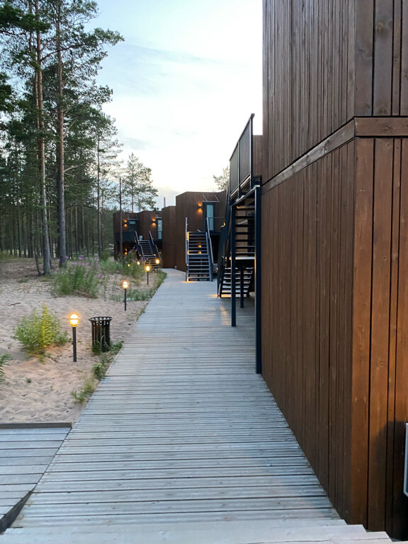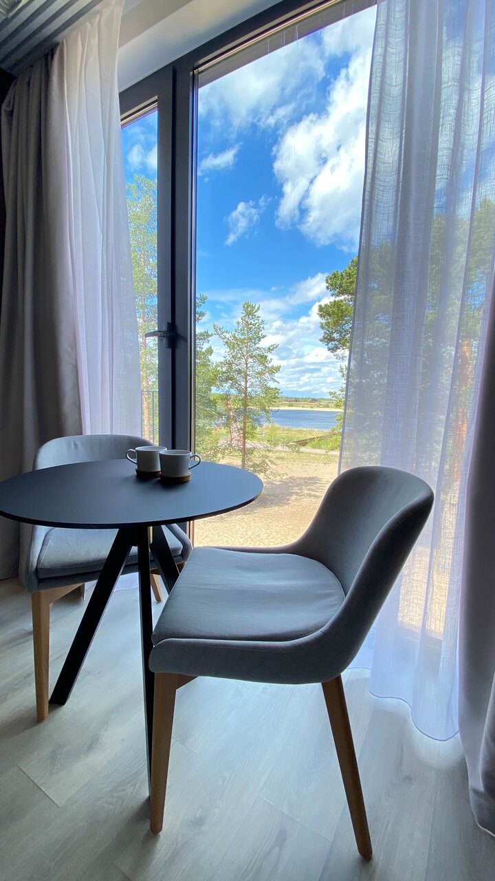 Очень хорошее место для отдыха от городской суеты! Красиво, тихо, свежий воздух, Ладога, вкусная еда Если все же хочется немного экстрима, можно прокатиться на квадроциклах по Кексгольмскому бору — дух захватывает))) Номерной фонд хороший, мы отдыхали в семейном номере-студии, очень понравился! Места достаточно, кровать большая, есть терраса — даже посчастливилось наблюдать с нее северное сияние