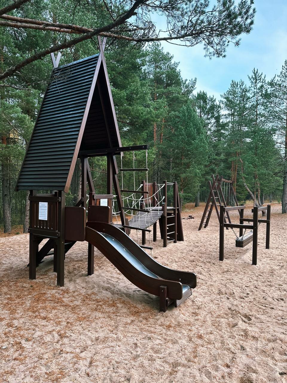 - Веревочный парк и тропинки для прогулок.