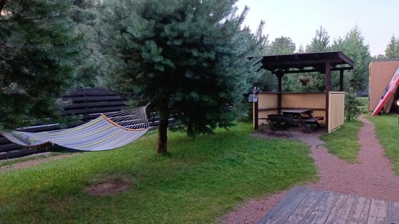 Хорошее место, отличное расположение, приятные хозяева. Все понравилось. Единственный наверное небольшой минус это лестница на второй этаж, в остальном все хорошо. В домике есть все необходимое, посуда, полотенца, постельное бельё, бесплатный вайфай. На территории дартс, настольный теннис, просторный гамак у каждого домика, в прокат можно взять велосипеды. До залива с хорошем пляжем около 500 метров,в лесу грибы.