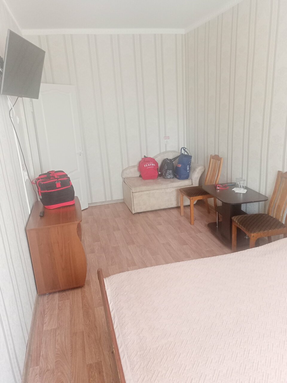 - Большие номера с необходимой мебелью и техникой (чайник, холодильник, телевизор).