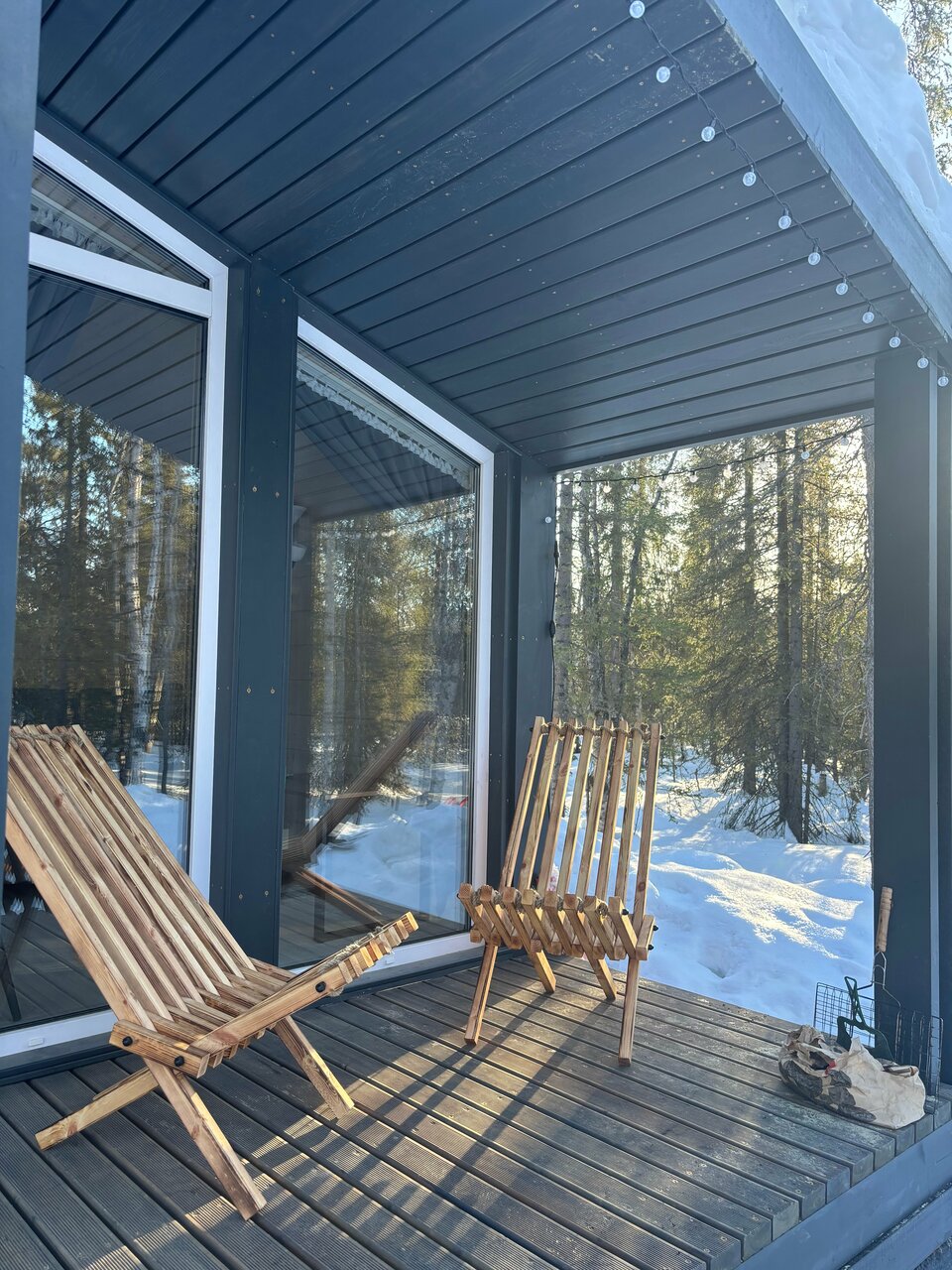 Уютные домики, вокруг красивый лес. На улице около — 30 градусов, а в домике тепло. Все сделано с душой, есть все необходимое. Рекомендуем!