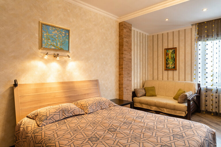 Все соответствует описанию и отзывам. В апартаментах уютно, комфортно, есть все необходимые условия для спокойного отдыха от городской суеты. Спасибо за созданные условия для полноценного отдыха!