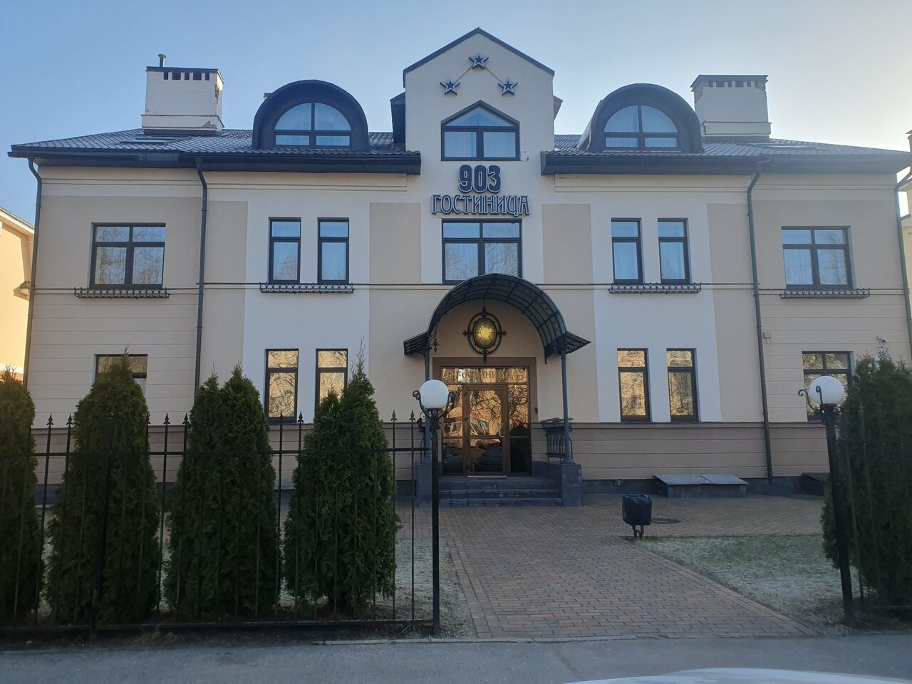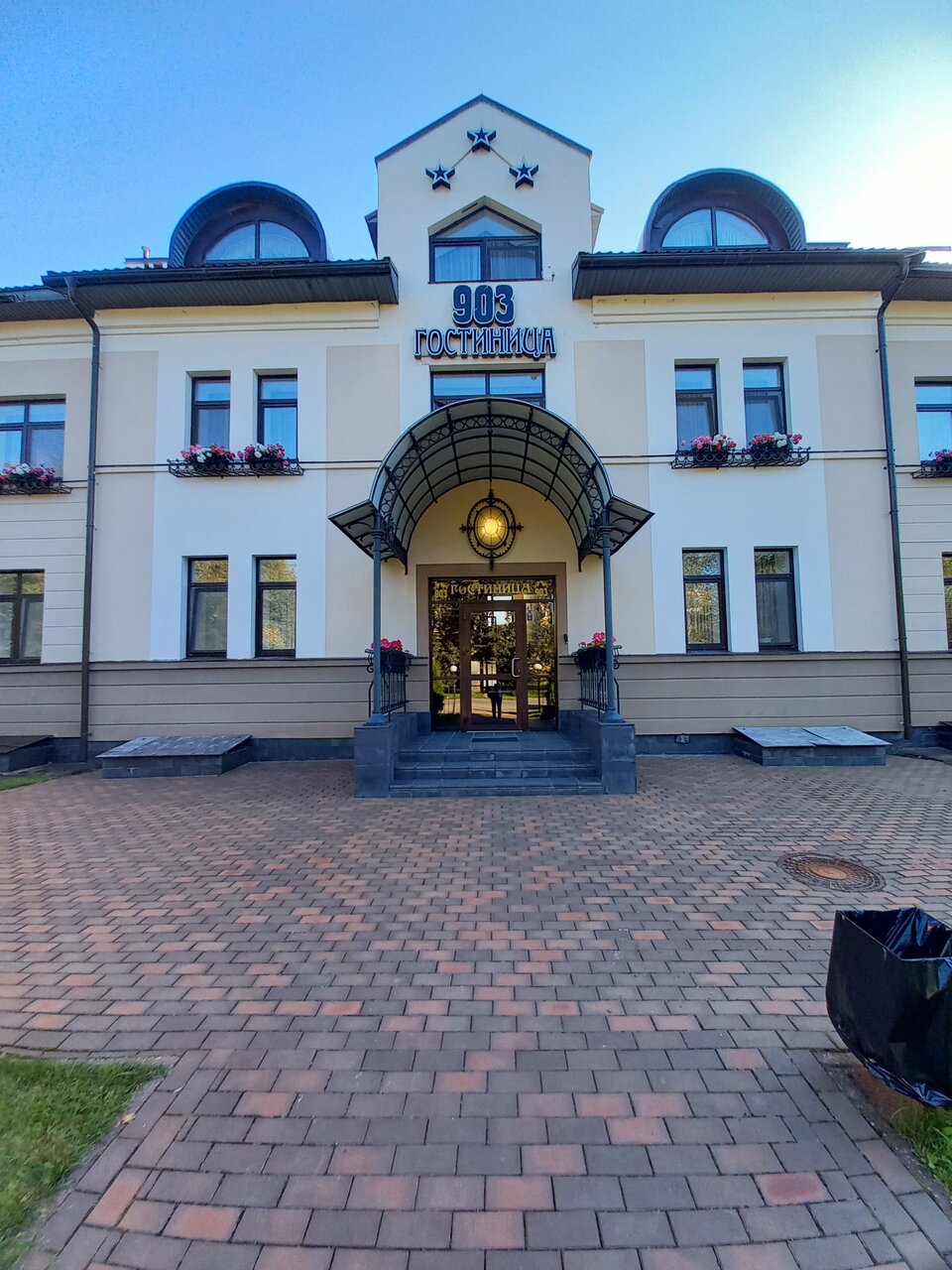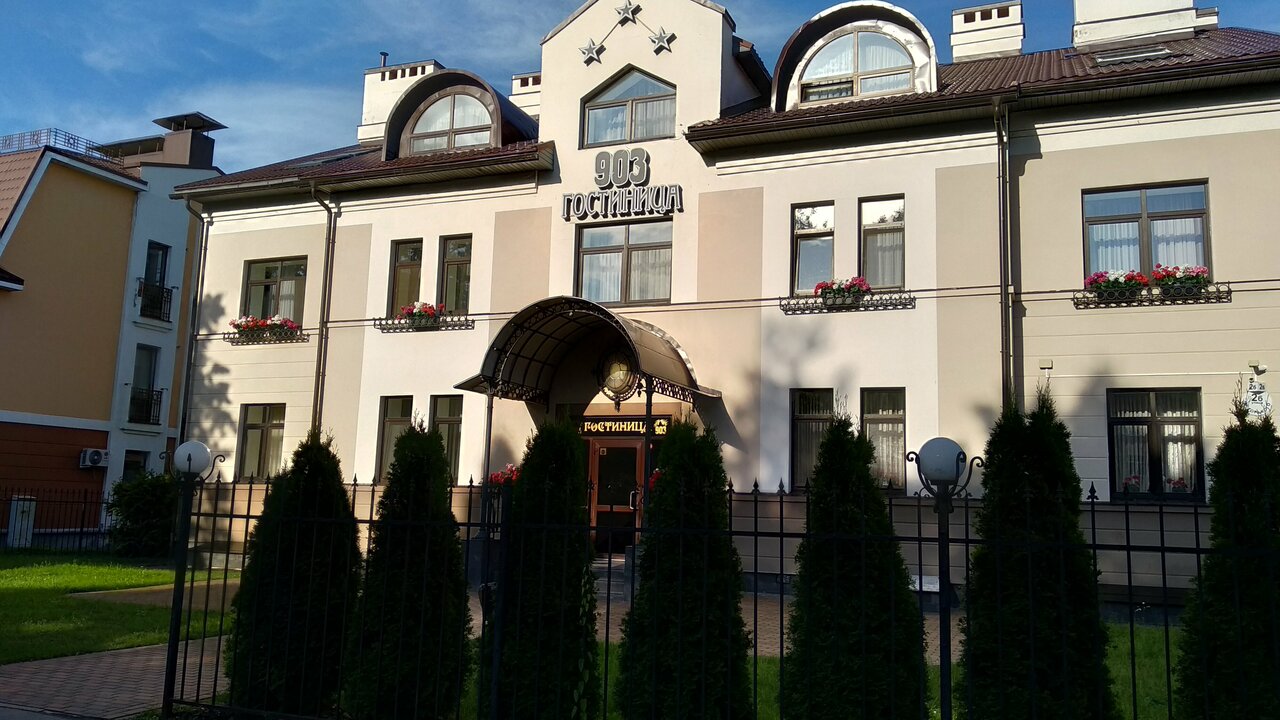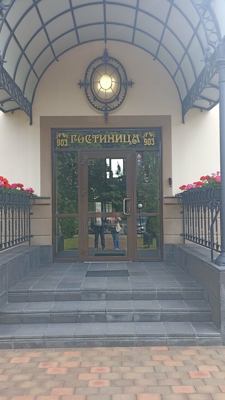 Гостиница «903» (Псков, ул. Максима Горького, 2Б) — трёхзвёздочный отель с круглосуточным размещением. Расположена вблизи центра (до 1 км), парка и аптек. Номера оснащены кондиционером, Wi-Fi, телевизором, мини-баром, чайником и микроволновкой; есть кухонные уголки. Гостям доступны бесплатная парковка, прачечная, химчистка, трансфер и сейф. Время заезда — с 14:00, выезда — до 12:00.
