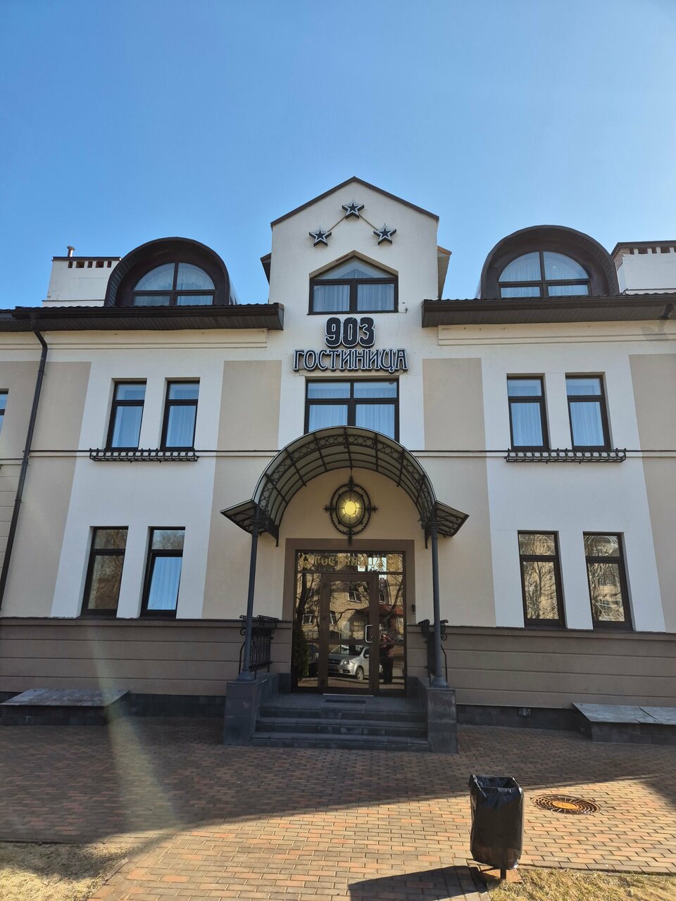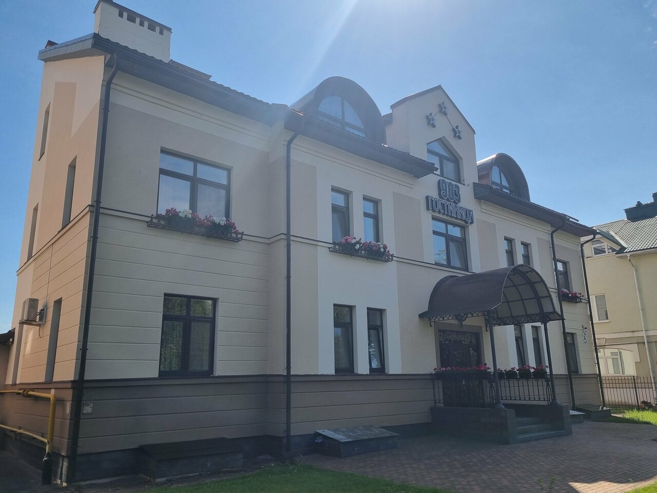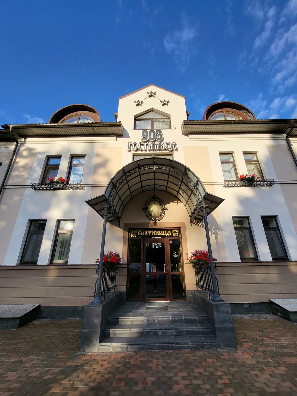 Гостиница «903» (Псков, ул. Максима Горького, 2Б) — трёхзвёздочный отель с круглосуточным размещением. Расположена вблизи центра (до 1 км), парка и аптек. Номера оснащены кондиционером, Wi-Fi, телевизором, мини-баром, чайником и микроволновкой; есть кухонные уголки. Гостям доступны бесплатная парковка, прачечная, химчистка, трансфер и сейф. Время заезда — с 14:00, выезда — до 12:00.