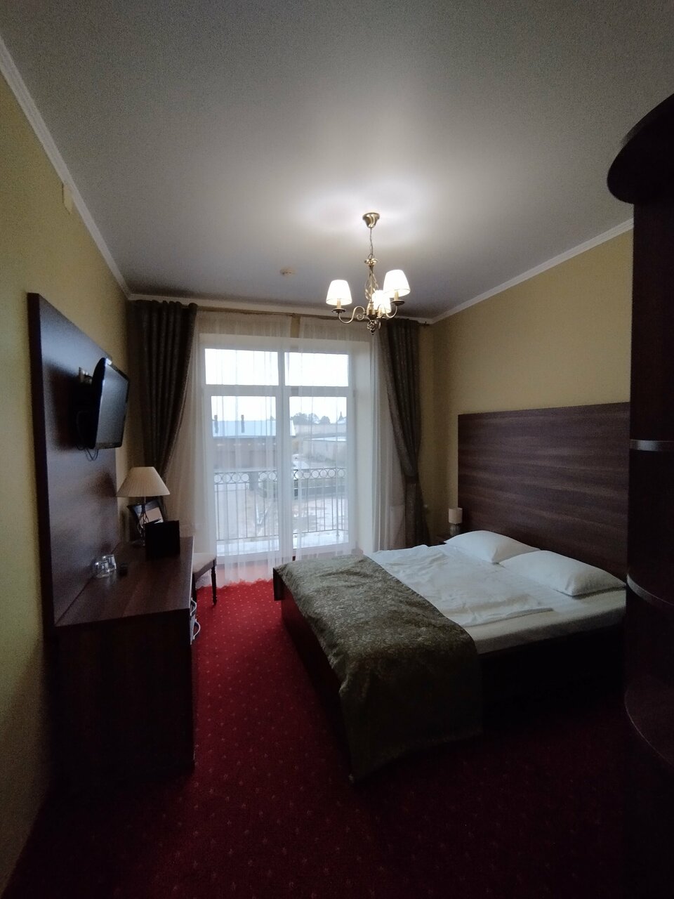 Эксклюзивный «Люкс Премьер» – представлен в единственном числе, состоит из двух комнат с большой террасой, исключительным видом на одну из главных достопримечательностей Симферополя – Екатерининский парк.