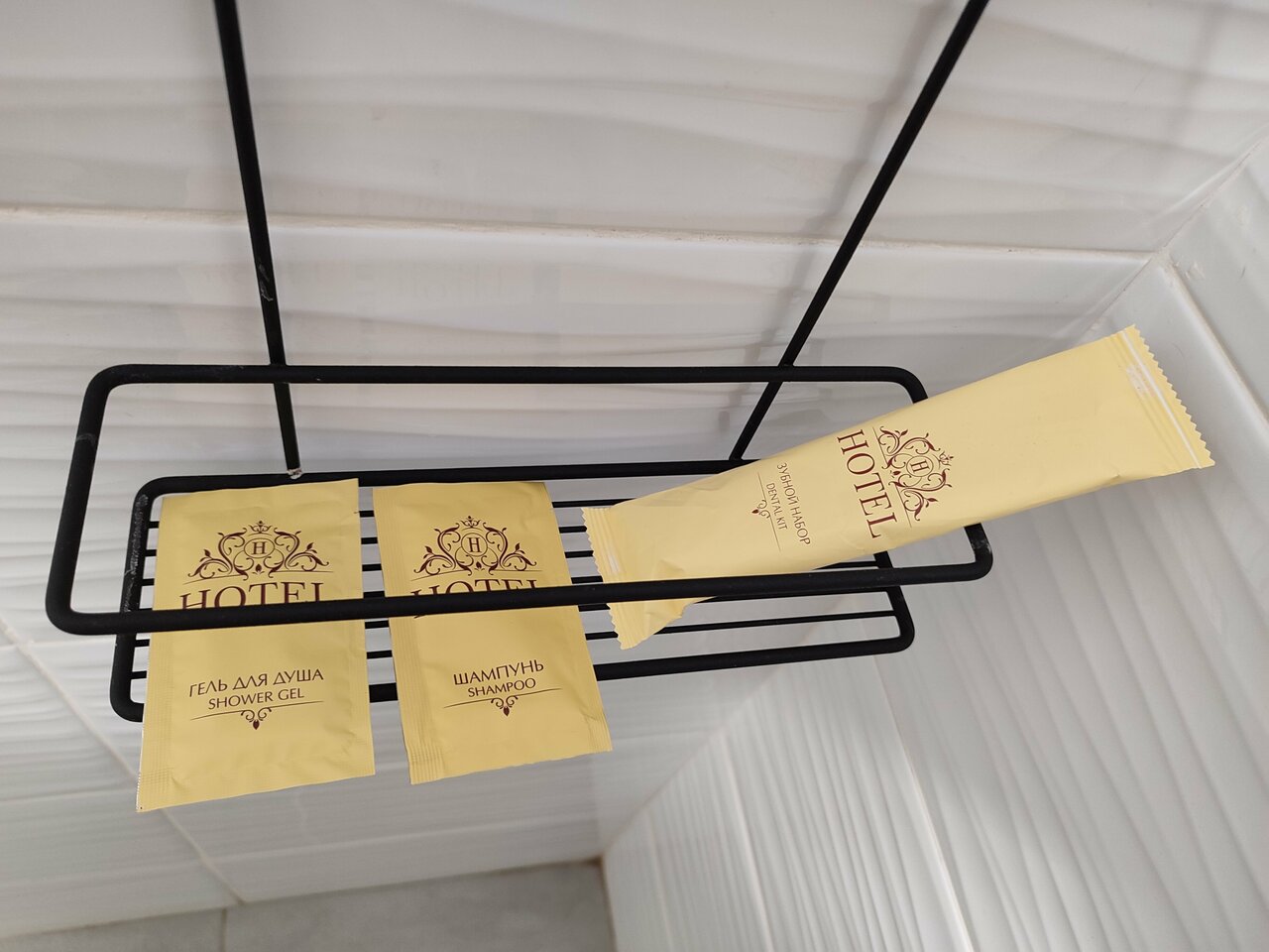 Отличный номер. Есть фен, утюг, одноразовые зубные щетки, гели, шампуни, тапочки, мыло. На кухне всё для жизни). Очень чисто в номере. Парковка была не заполненная, места хватило. Менеджер дружелюбная, ответила на все вопросы.