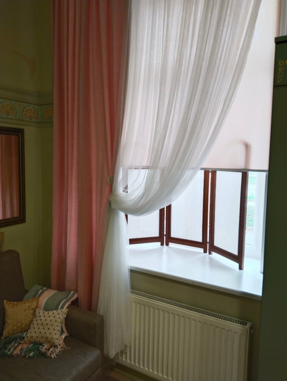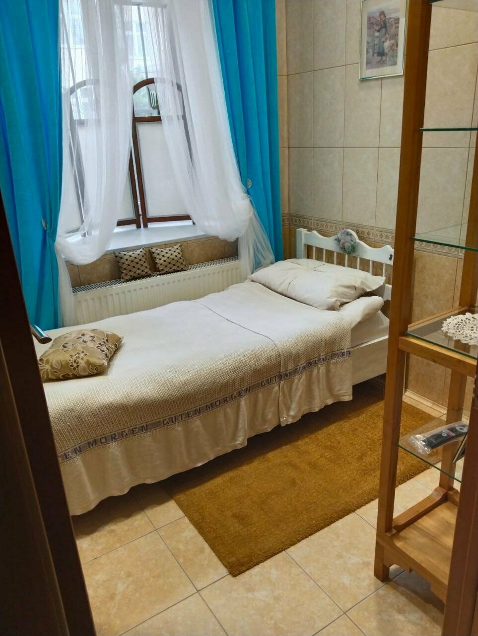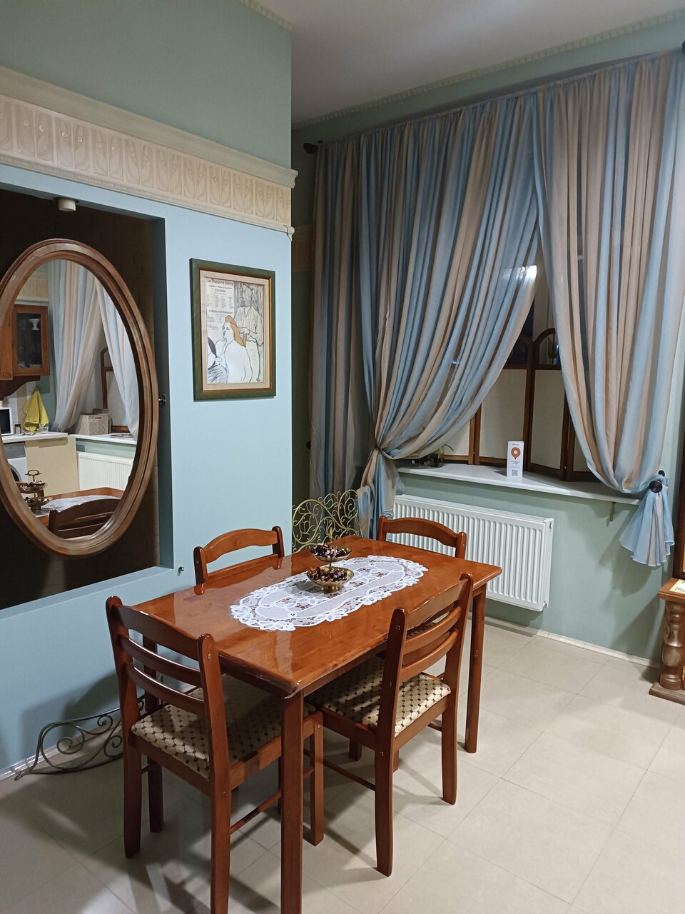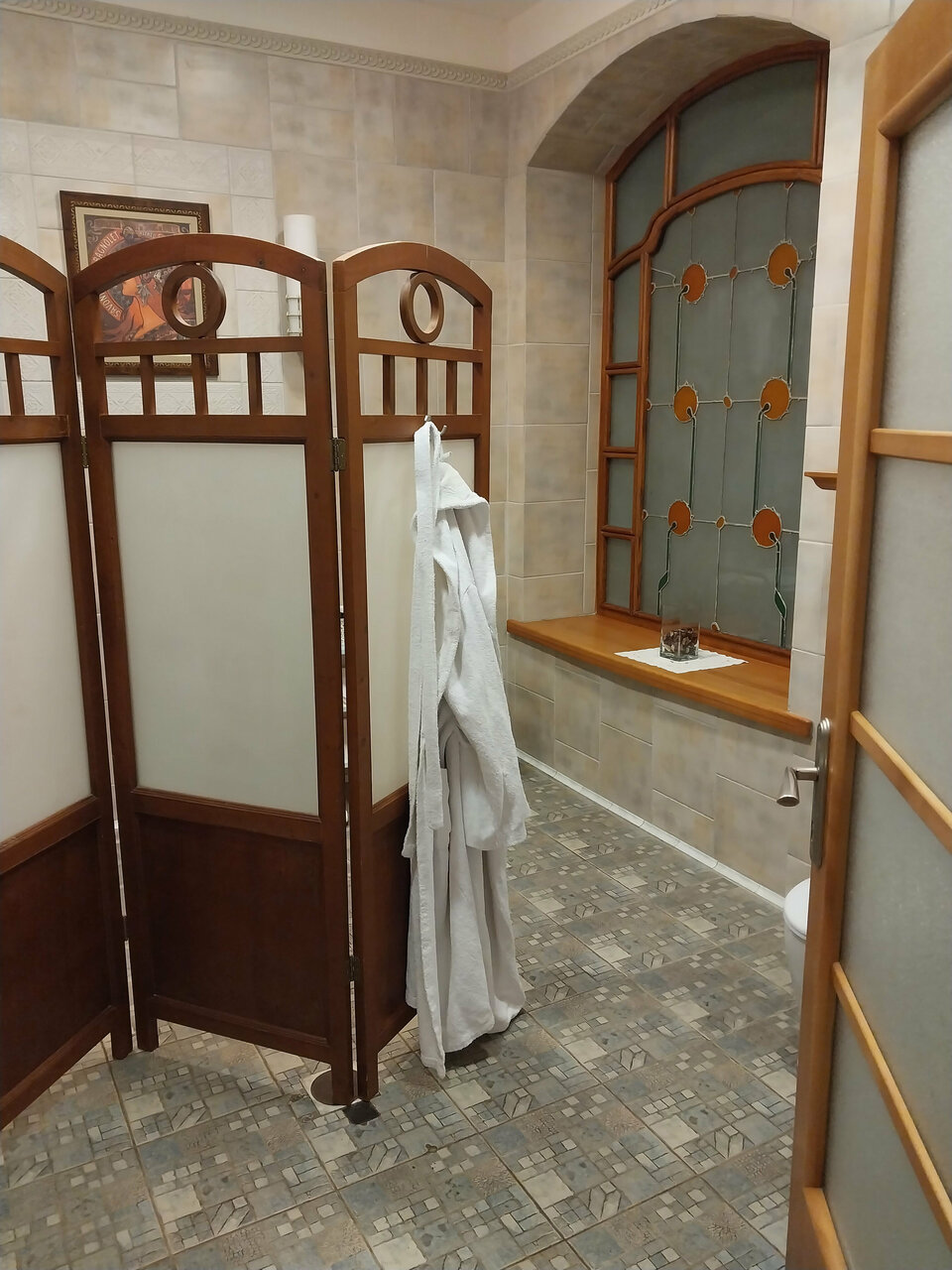 Остановились переночевать по пути. Мини отель довольно интересный. Очень красивый интерьер, витражи и плитка, лепнина. Немного смущало, что ванная комната имеет отдельный вход, но прекрасный матрас и чистое уютное постельное белье, затмили этот недостаток. Нам досталась большая ванная, в которой была очень интересная деталь как деревянная ширма перед душевой кабиной. Очень заинтересовали витражи в верхней части стен. Мы такого нигде не видели.