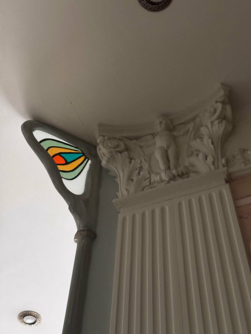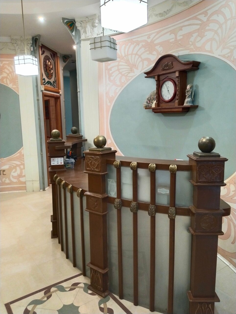 - Интересный и стильный интерьер (витражи, лепнина, необычные детали).