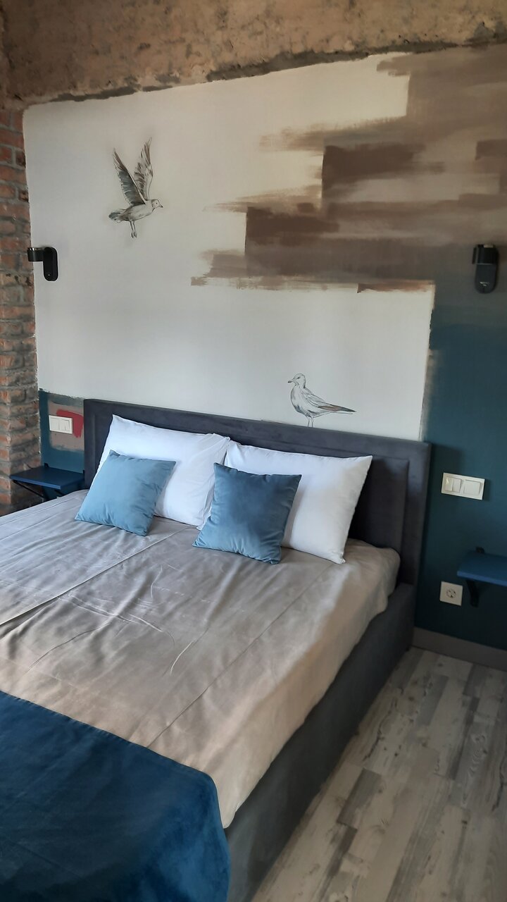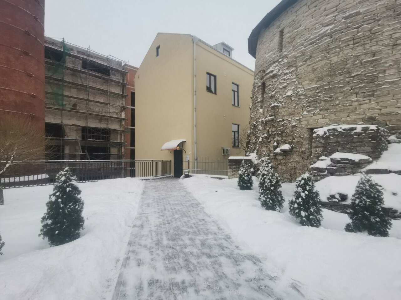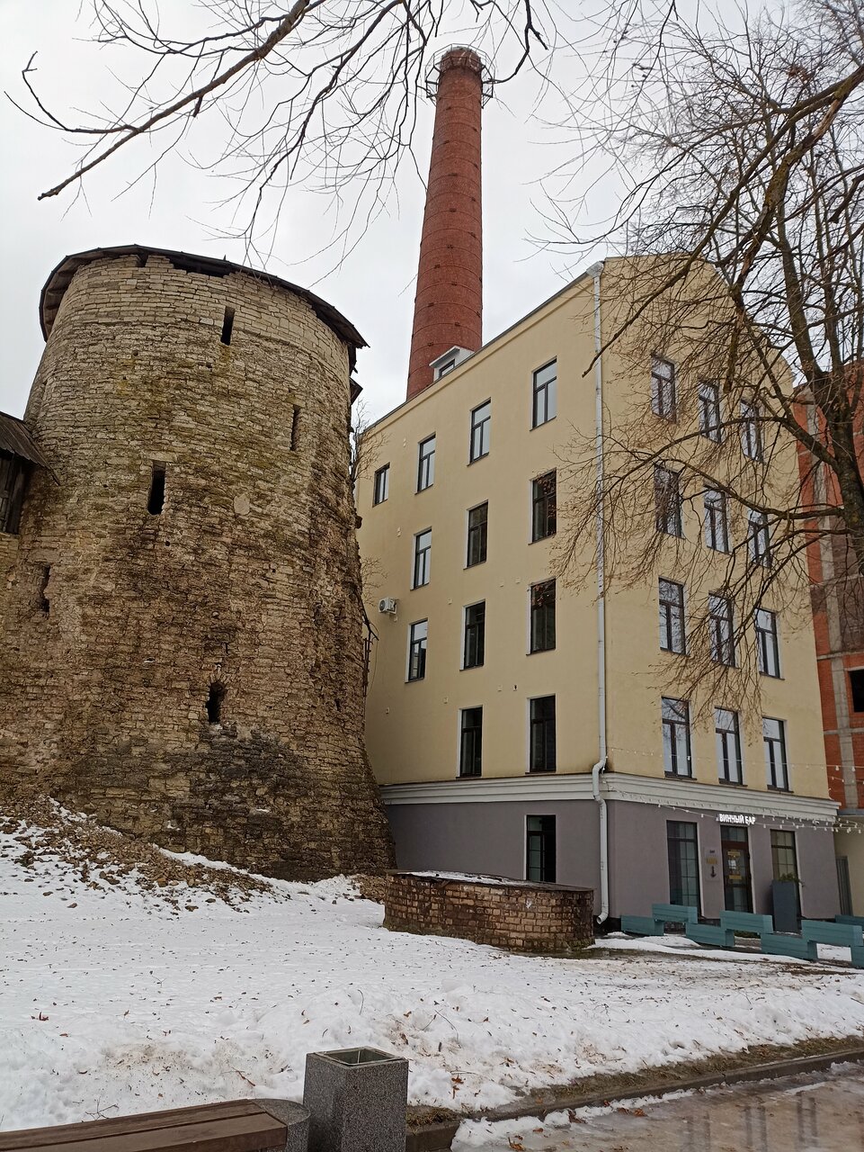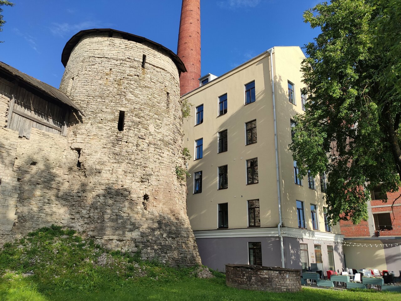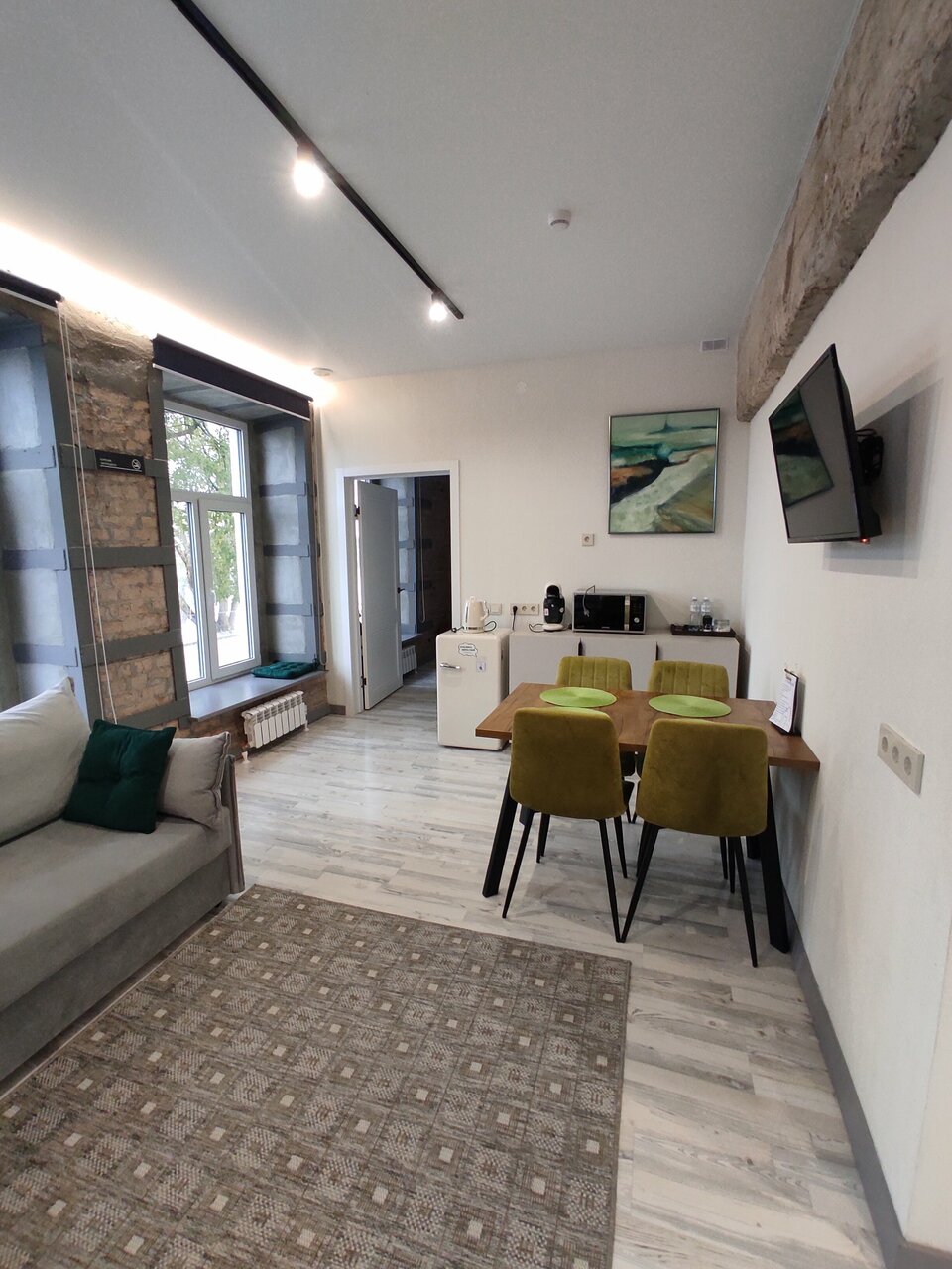 Снимали номер М на две ночи. Одна большая комната, она же прихожая, она же гостиная, она же кухня, и спальня. В спальне кровать — матрас для меня очень мягкий, но в целом нормально. В большой комнате диван. Если верить ребенку, очень удобный. Первый этаж. Отдельный вход. По утрам чайки орут очень убедительно. На территории — часть стены и Мстиславская башня. Это добавляет колорита. Место, на мой взгляд, очень удачное. До Кремля минут 7 пешком, до прочих интересных локаций ( музей Поганкины палаты, музей Двух капитанов) тоже рукой подать. Единственный минус — очень сильная слышимость. Стены как резонатор. В остальном — одни плюсы. Есть ходили в Мишу на Октябрьском проспекте. Тоже довольно близко.
