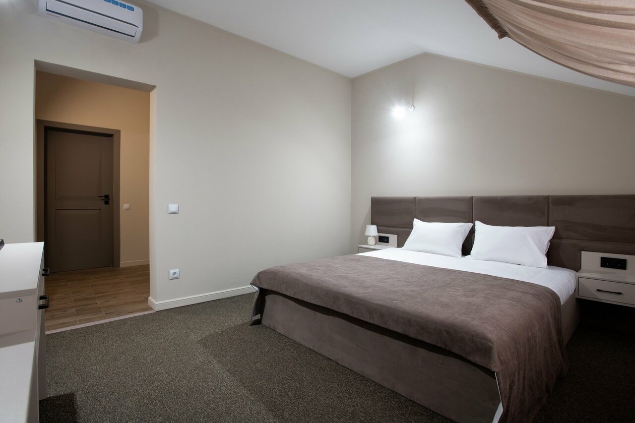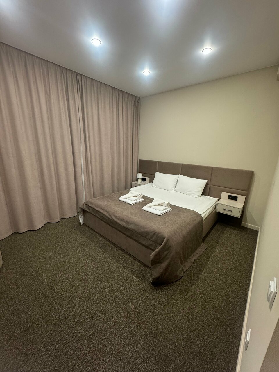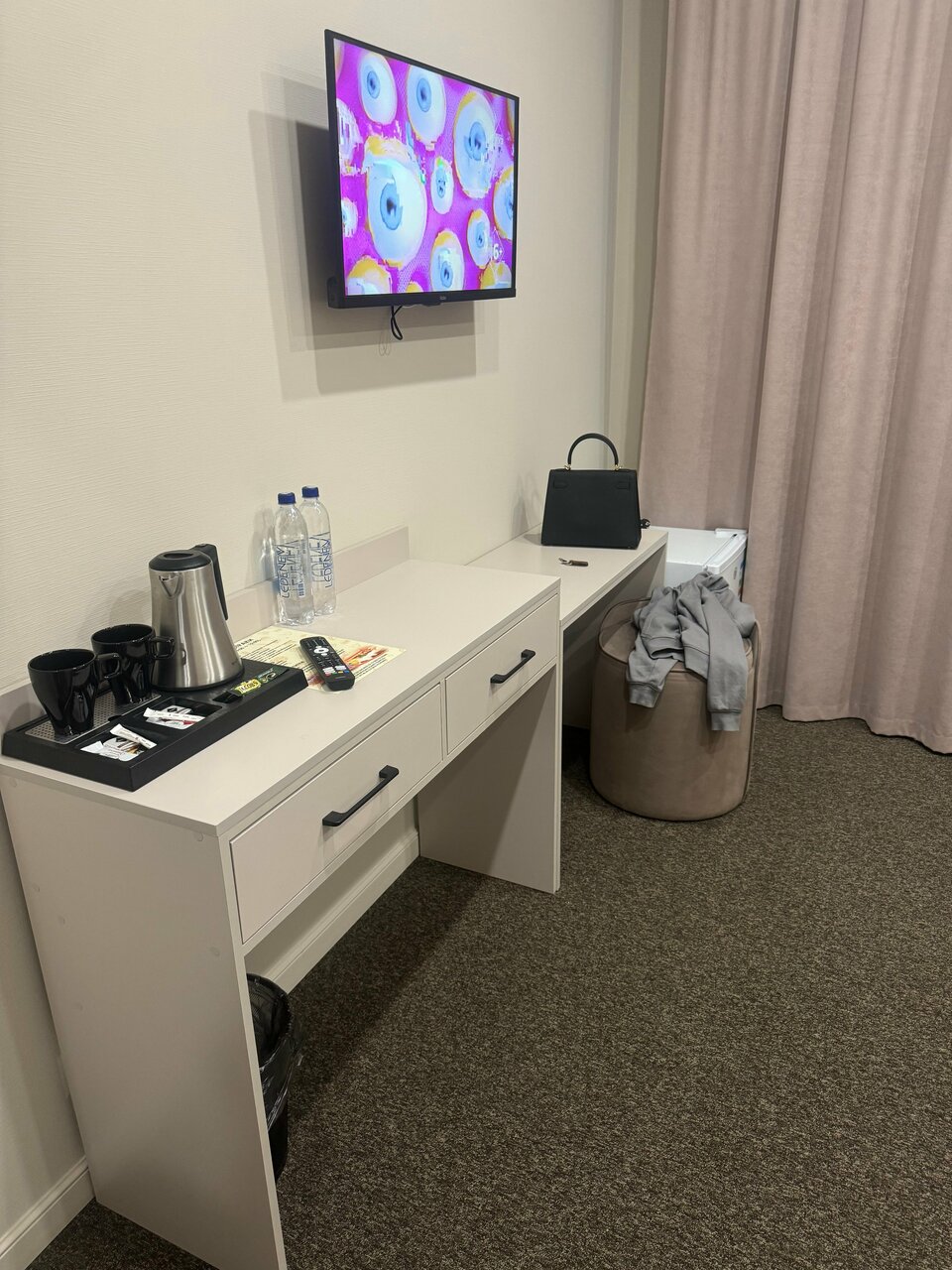 Гостиница шикарная, кровать и постельное белье изумительные. Да, гостиница находится не в центре города, но мы были на машине для нас это не проблема. К тому же в гостинице имеется закрытая стоянка. Свежий ремонт, удобная душевая, вода уходит хорошо и быстро. Халаты мягкие и незамученные. Рядом продуктовый магазин. Полотенца меняли еженедельно, уборку тоже. Нам очень все понравилось, от души персоналу огромное спасибо!