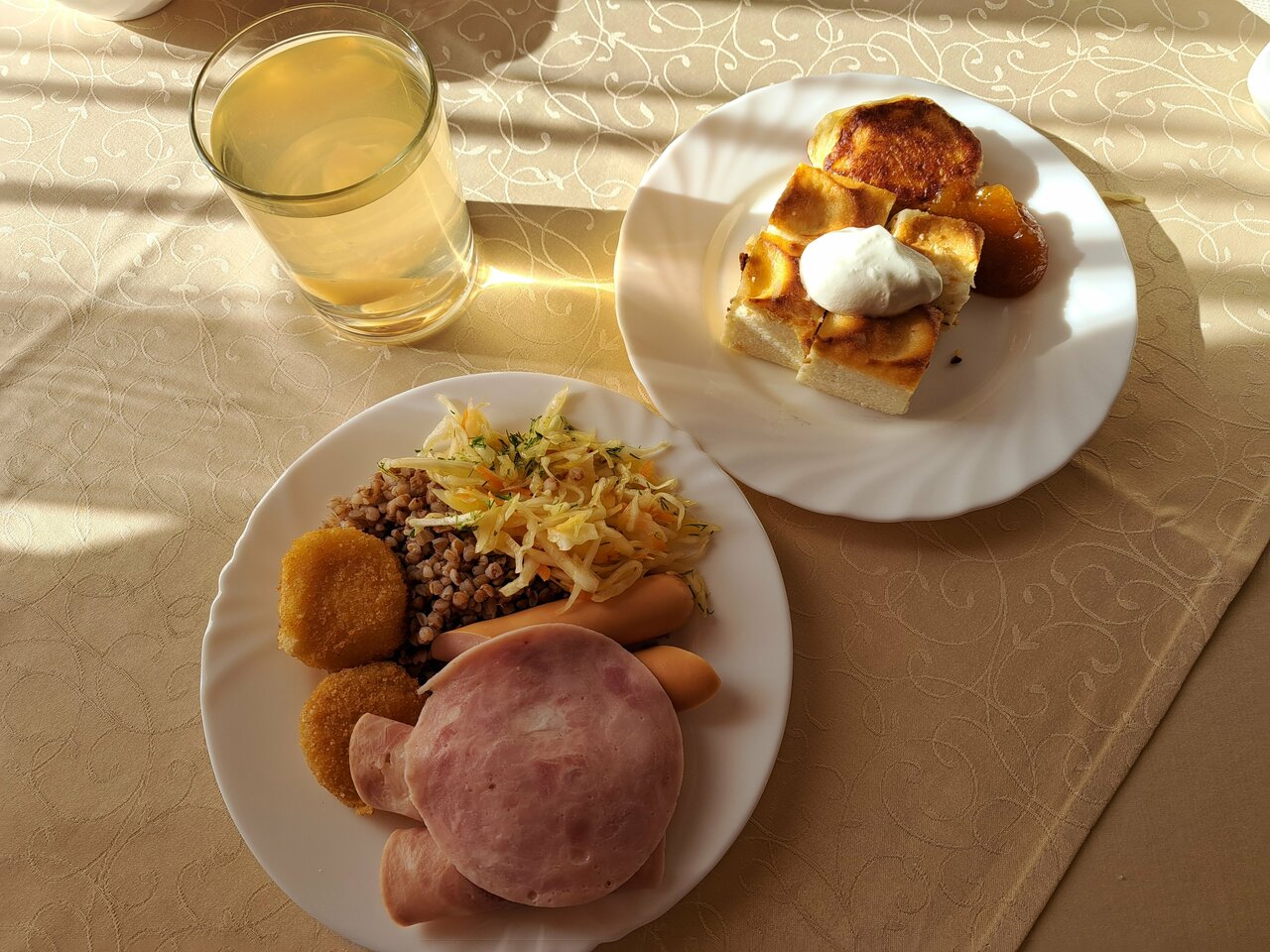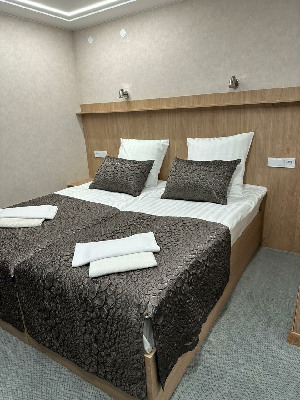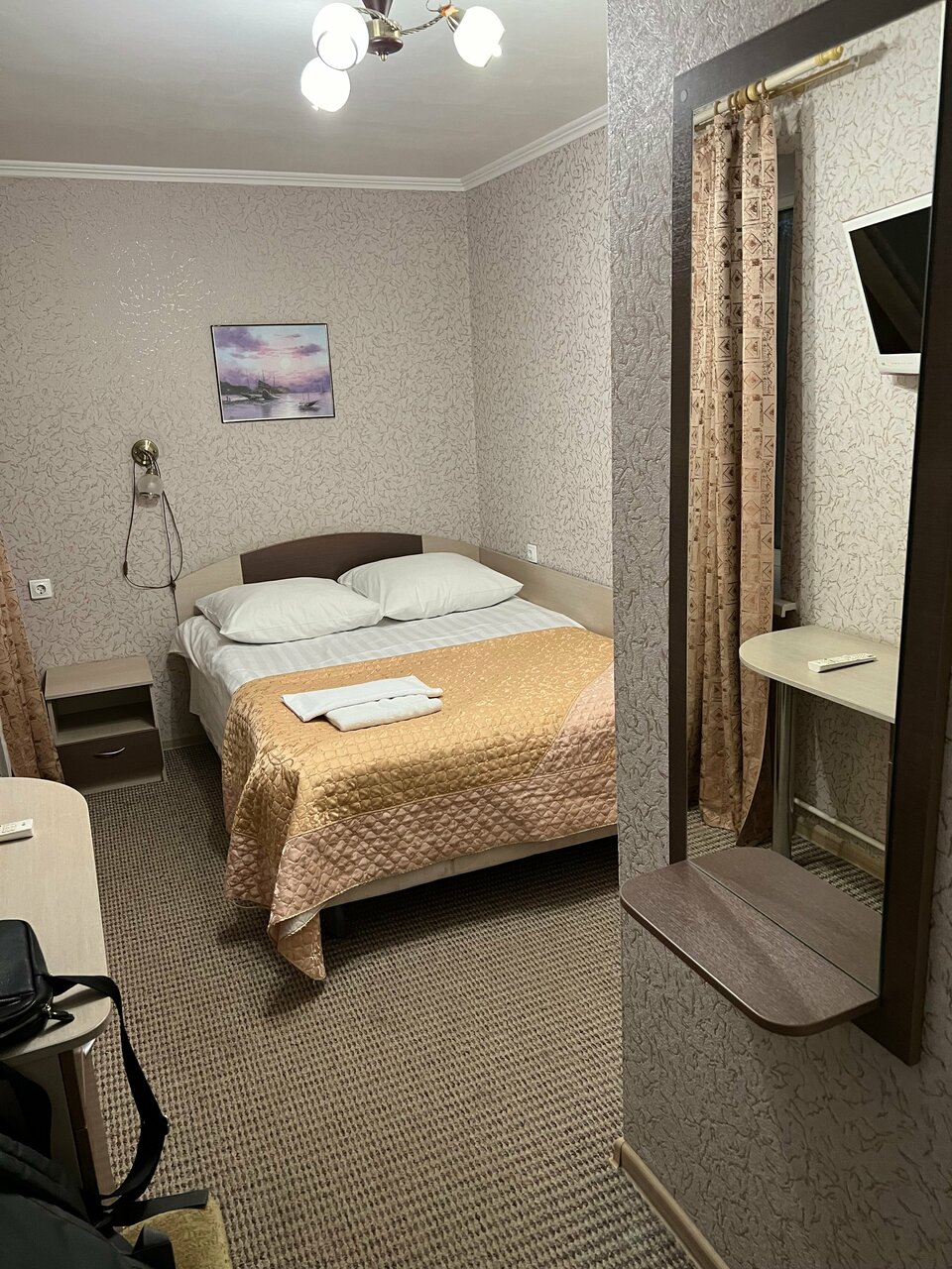 Останавливались в гостинице на одну ночь. 2-х местный номер. Номер полностью укомплектован всем необходимым. Кровать удобная. Тепло. Порадовала даже такая мелочь, как крючки в санузле. Завтрак — шведский стол — вполне достаточный. (Не очень вкусный кофе, но можно заменить его другими напитками). Комфортно отдохнули остались довольны.
