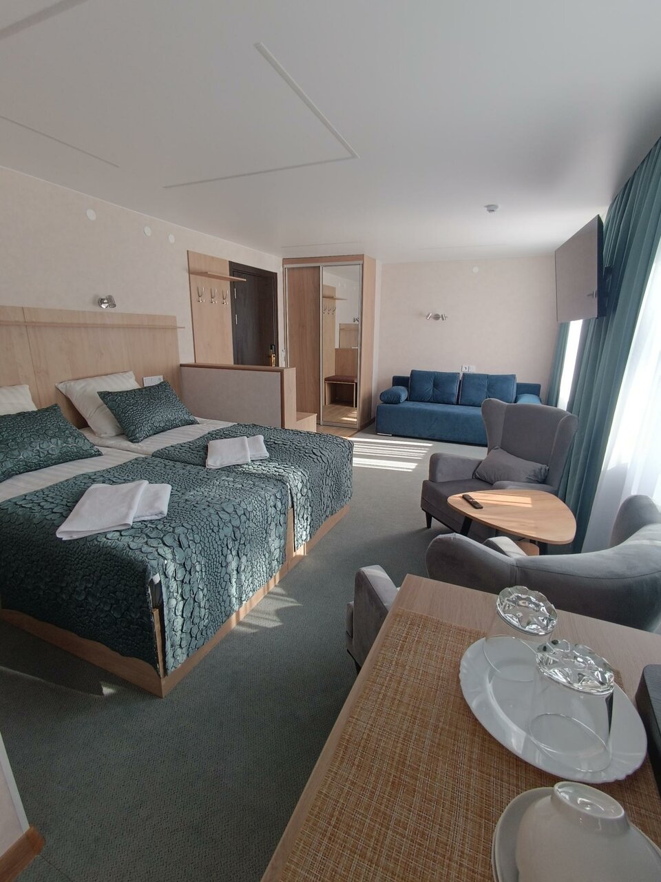 проехав пожалуй почти все гостиницы Пскова за несколько лет, почему то обходили вниманием Ольгинскую, и очень зря. Были приятно удивлены. Прекрасный вид на кремль, парковка под окнами, есть ЛИФТ! кулеры на этаже. Современные магнитки (между прочим по городу есть еще места где обычные ключи). Номер был двухкомнатный, уборка на 5, в самом номере комфортная температура, есть приветственный набор гостя. Проблемы возникли только с телевизором в гостинной, он упорно не хотел подключаться к ви-фи, но в спальне был 2й, под который после всех впечатлений Псковской земли благополучно уснули. Еще одним приятным удивлением стал завтрак, шведский стол, и очень вкусный кофе из кофе-машины. Однозначно рекомендасьон, вернемся снова!