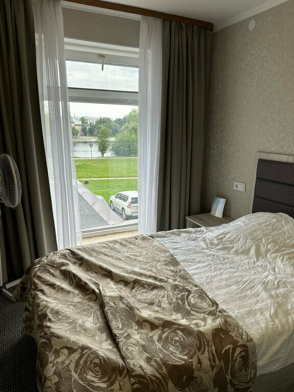 Прекрасное расположение!!! На берегу реки, рядом часовня, на другом берегу кремль. Также рядом любимый ресторан Хельга! Номера убитые, может, это нам так ‘повезло’. Жили в двухкомнатном. Телевизор особо не нужен был, но и смотреть его невозможно. Постельное белье, полотенца — все как будто из прошлого века. В ванную заходить не хотелось. Завтрак неплохой для 2*. Хороший кофе из кофемашины. Парковка прямо у отеля. В целом, неплохо. Расположение гостиницы компенсировало многие недостатки.