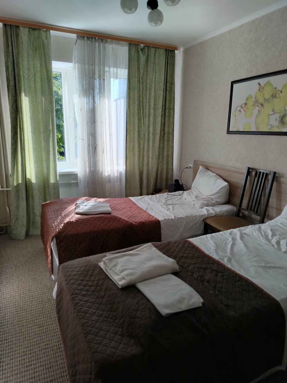 Прочитала хорошие отзывы и не думая забронировала 2 номера для нашей компании на новый год. Нл по приезду 2 января была ужасно огорчена. Всё 2 наших номера были убитыми. Стулья, ковролин грязные (( к тому же нас встретил в одном из номеров таракан. Из отзывов, которые я прочитала, поддержу только положительные про завтраки и красивый вид из окна. Поесть можно сытно и вкусно, за окном дейсвительно виден Кремль. За 5 тыс в сутки проживать в условиях, что на фото _ это ненадлежащее оказание услуг и неуважение к клиентам.