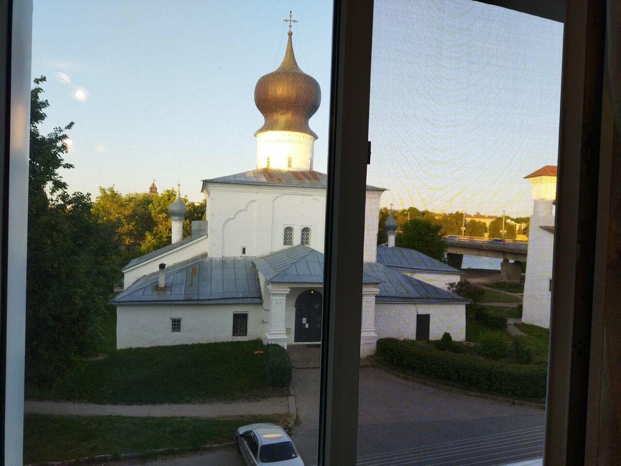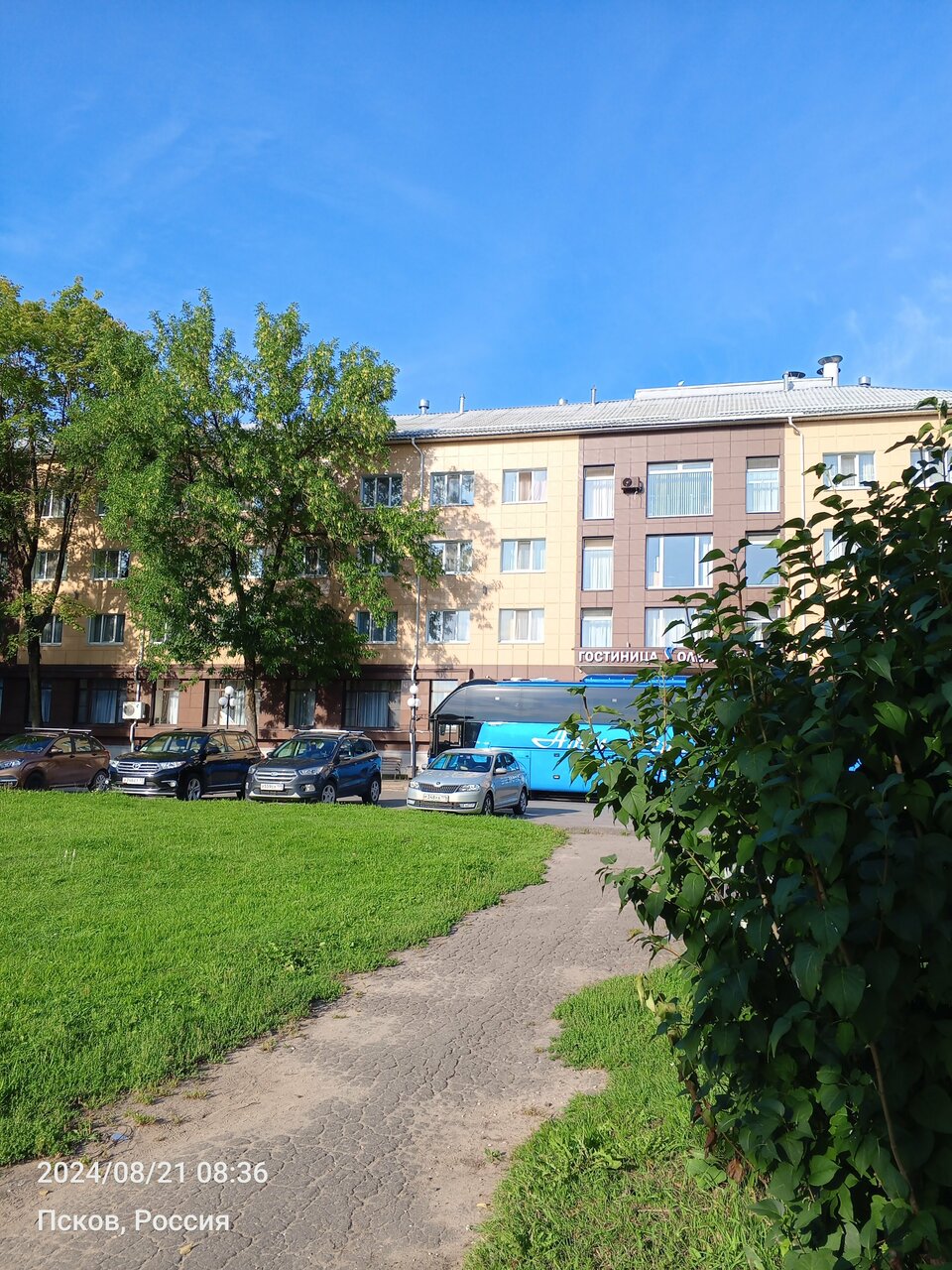 Гостиница находится в самом центре г.Пскова,окруженная древними церквями. Вид из окна открывается изумительный,одним словом,здесь начинается Россия. Номера уютные,замечательный шведский стол на завтрак.