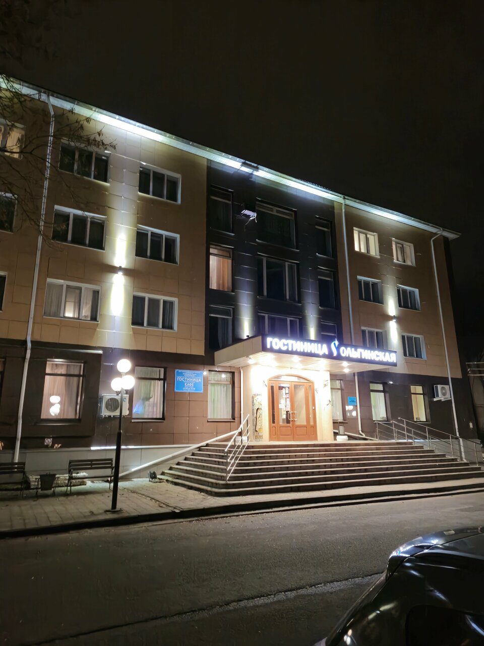 Удобства: лифт, кафе, камера хранения, уборка, детские кроватки. Условия: заезд с 14:00, выезд до 12:00. Контакты: olginhotel.ru, бронирование: 8 (800) 700-88-72, ресепшен: +7 (8112) 57-51-51.
