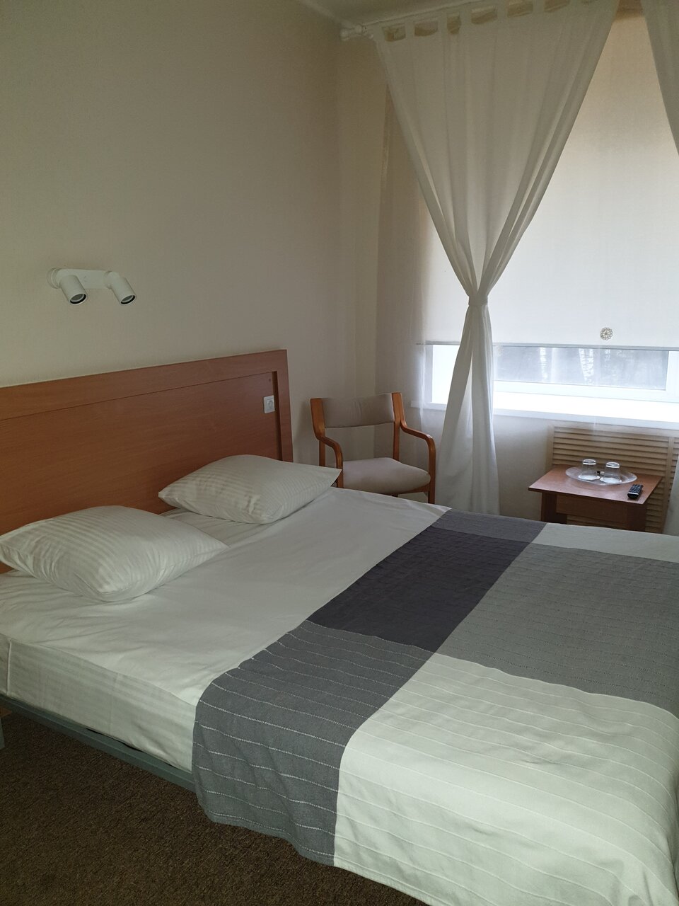 Хороший вариант по соотношению цены и качества. В комнате есть свои туалет и душ,горячая вода а так же полотенца. Так же в данной гостиннице есть свой ресторан (в нем не был ничего про него сказать не могу). На данный момент для заселения просят отрицательный пцр тест