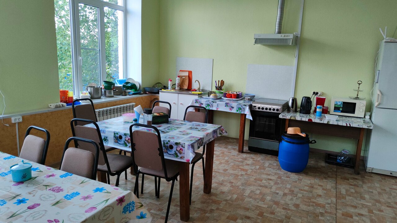 - Общая кухня с холодильником, микроволновкой, плитой.