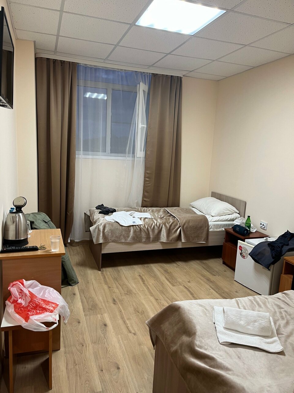Быстрое расселение. Решили спонтанно, тяжело ехать было. Без брони, 10номер 3900р, не дёшево. Чисто, но кровати (матрацы)продавлены, диван как в бомжатнике, вода ржавая и воняет, душевая кабинка качается. Врядли туда заеду ещё. Хотя стоянка забита машинами, видимо людям номера лучше достаются