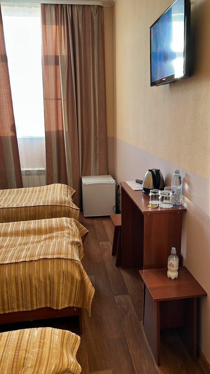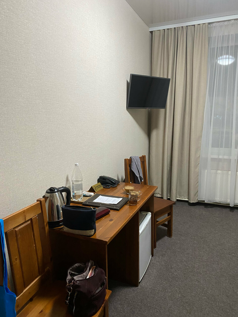 Хороший транзитный отель. Поспать, помыться, позавтракать и поехать дальше. Номера небольшие, но довольно уютные. Отель был полностью занят — теперь по этому направлению трудно найти жилье. Бронируйте заранее. На завтрак — 4 варианта, или с яичницей, или с кашей. Звукоизоляция достаточна, чтобы выспаться, особенно после дороги.