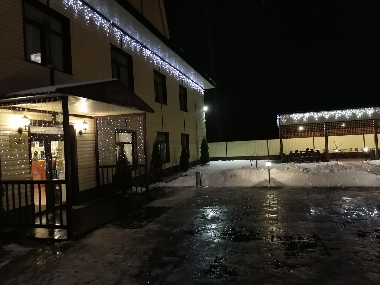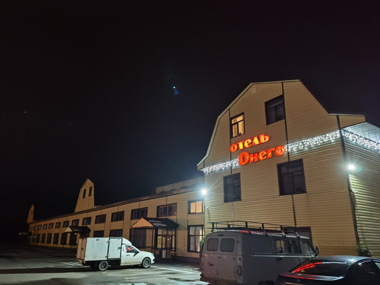 Отличный отель для этих мест! Мы долго колесили по округе в поисках места под палатку на Онежском озере, посреди ночи отчаялись искать, поехали искать гостиницу. В Онего оказались свободные номера. Нам приятно повезло. Вежливый персонал вошёл в положение, за что им отдельное спасибо! Вкусный завтрак! Есть на этаже морозильник для аккумуляторов холода, что особенно приятно, больше нигде такого не встречали! Огромная своя парковка, детская площадка, беседка. Однозначно рекомендую остановиться тут!