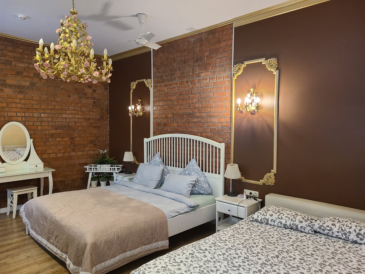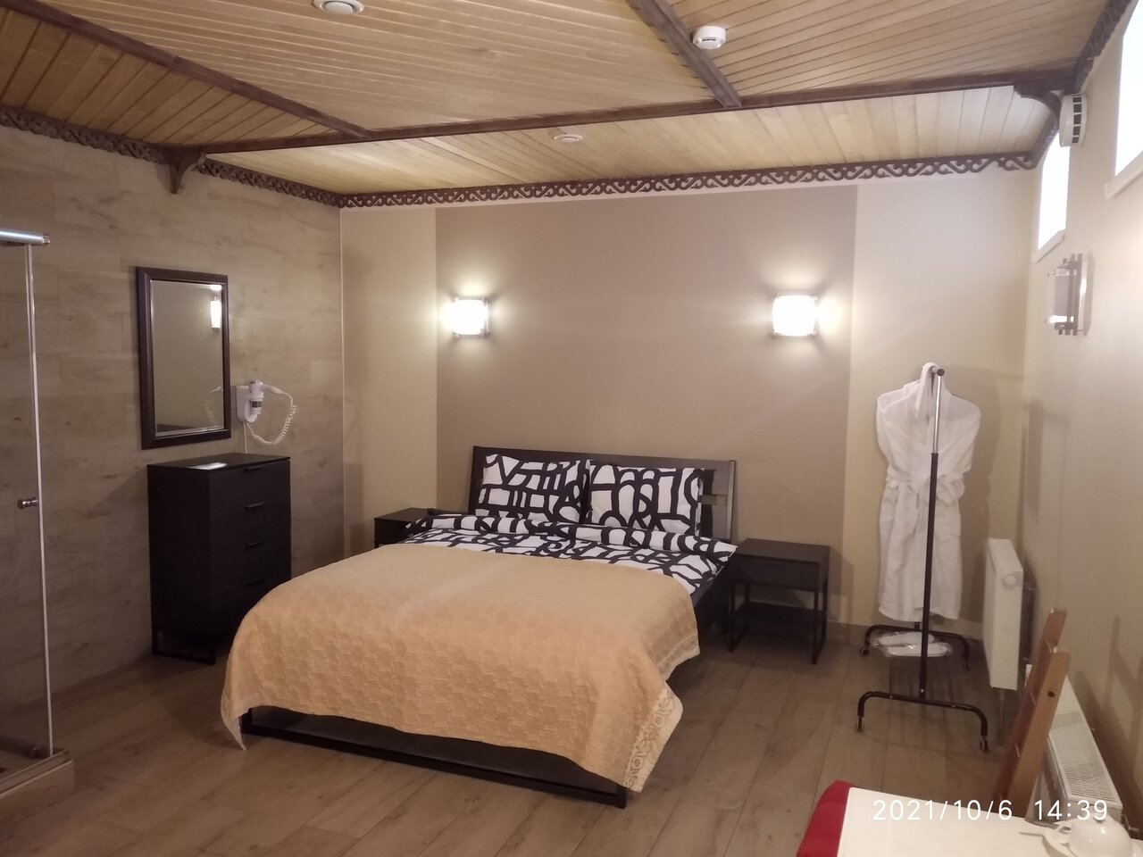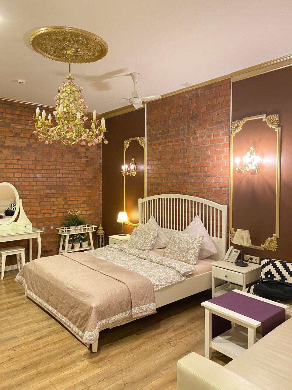 Снимала номер на годовщину свадьбы с мужем! Позвонила в отель и забронировала конкретный номер с красивой люстрой и бра с вензелями. Спасибо большое Номер чистый, всё есть, всё работает, засоров нет. Но, есть минус кровать очень скрепит, даже когда спишь ночью и поворачиваешься кажется что это слышат все)) Кондиционера нет, но есть над кроватью вентилятор. У отеля есть своя парковка, очень удобно. С 8 до 10 у нас был включен завтрак, но мы не ели ничего не могу сказать. Расположение отеля удобное к достопримечательностям и паркам! Советую отель, спасибо персоналу