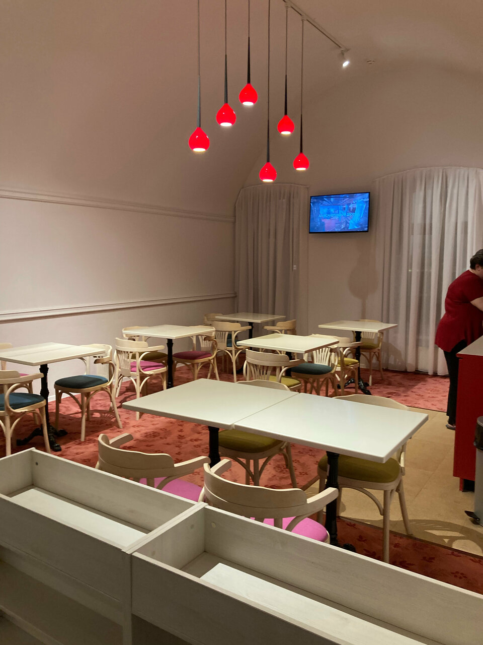 Ужасное место, если вы приехали по работе. Половина такси не понимает, что такое розовая караулка и вам придётся топать пешком. После того как вы проехали пол-страны и хочется быстрее лечь спать. Как заказать такси отсюда в город я не знаю — завтра буду проходить этот квест. Поехали дальше. Завтраки. Которые кстати на время ПМЭФ подорожали до 2 тысяч за штуку. Итак завтрак. С 8.30 утра. Вы серьёзно товарищи? Мне в 7.30 уже выезжать в Питер. Какое решение предлагает гостиница? Оставят с вечера в ланч-боксе. С утра давитесь холодным дорогой гость. Точки питания в гостинице конечно нет. Даже бутылку холодного пива не купить. Хочешь поесть — топай в город. Убранство номера? Чуть модернизированный советский союз. Итог — если вы любитель парков и дворов и приехали насладится атмосферой царской России, то это для вас. Если же вы приехали работать и вам дорого время, то держитесь этого места подальше и не повторяйте моих ошибок