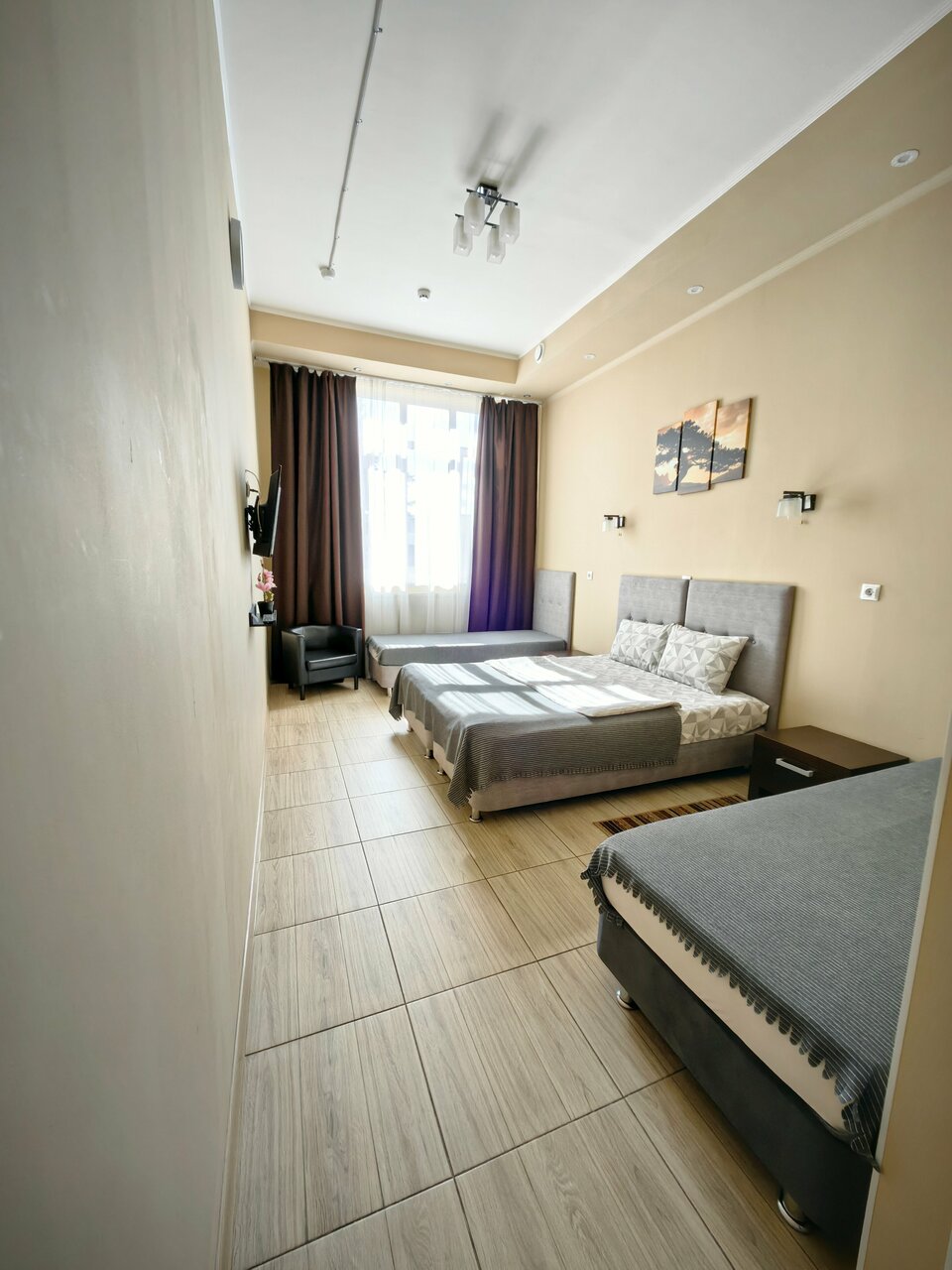 Остановись на 2 дня. Персонал приветливый. Снаружи отель не внушал доверия но зайдя внутрь я был приятно впичитлен! Не смотря на ремонт всё чисто. Номера чистые, просторные. Но есть один минус — отель на первом этаже. Рядом пятерочка, Магнит и Fix Price. К тому же в соседнем здании находится кафе отеля в котором можно получить 10% скидку, если вы проживаете в отеле. Рекомендую!