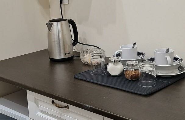 - Наличие необходимых удобств (чайник, кофе, чай, сахар, микроволновка, холодильник, посуда).