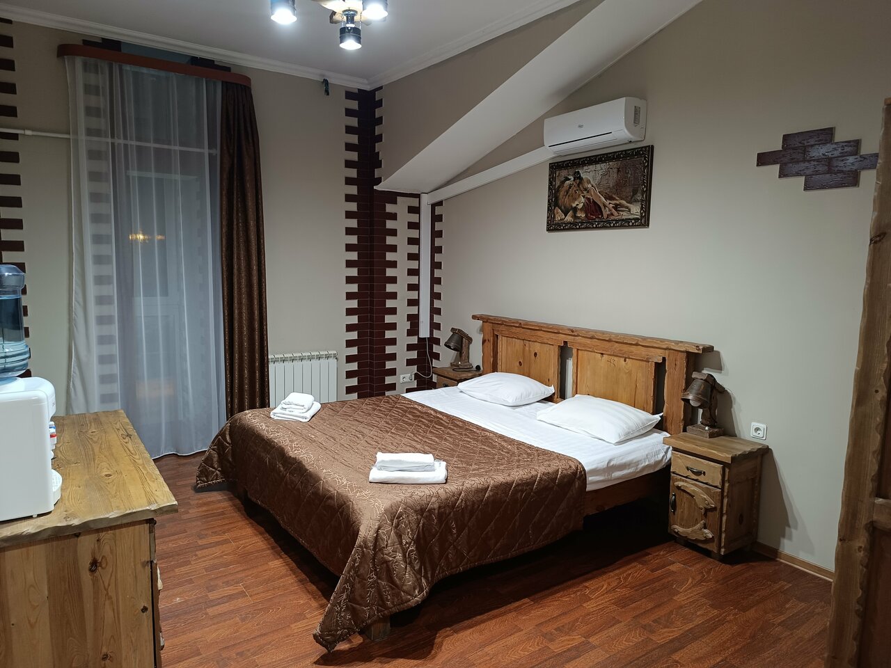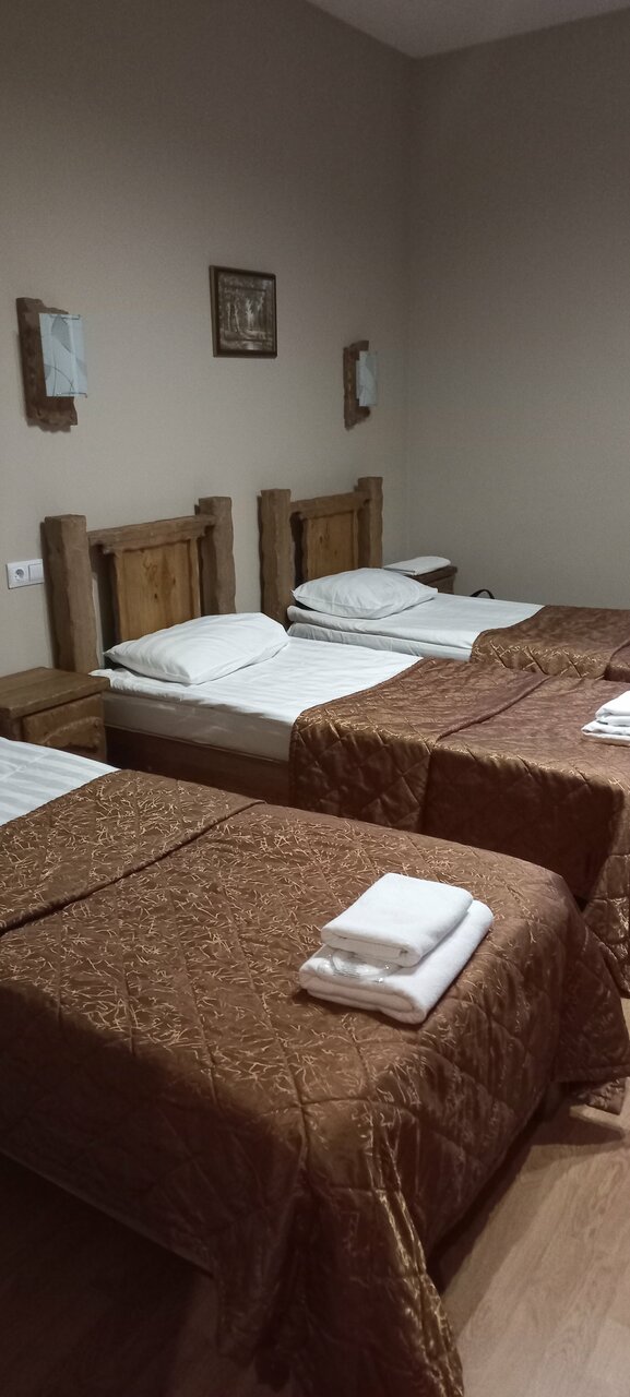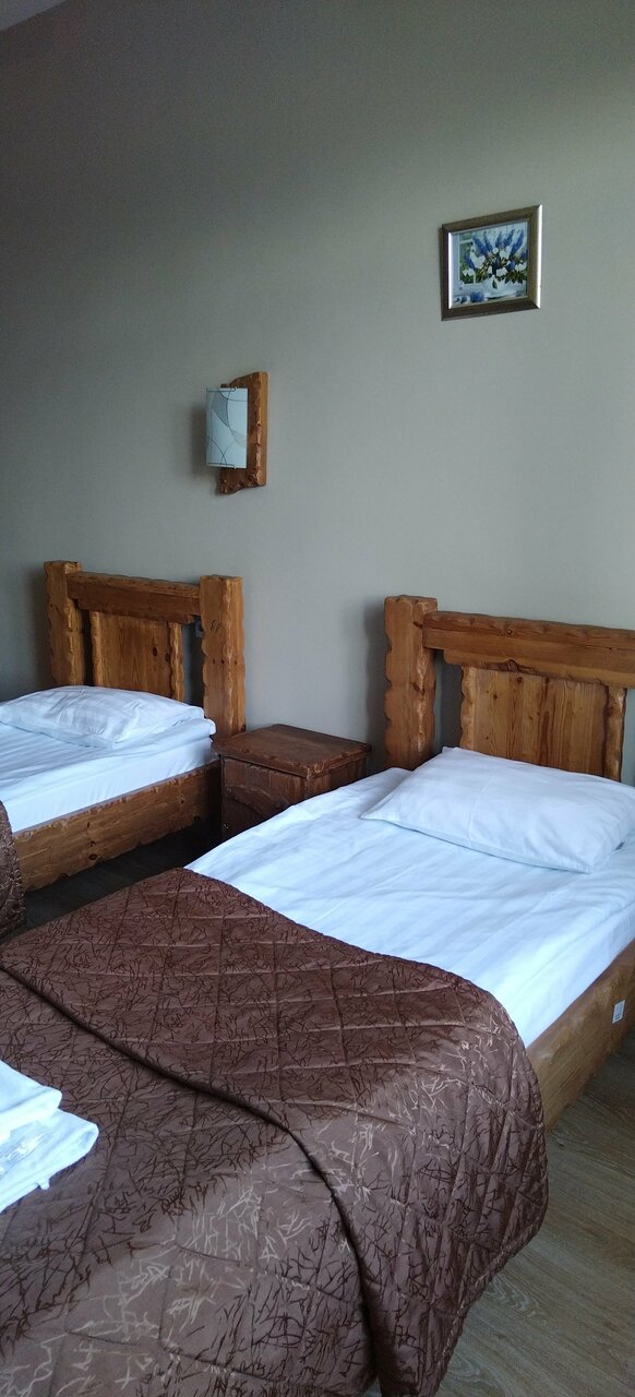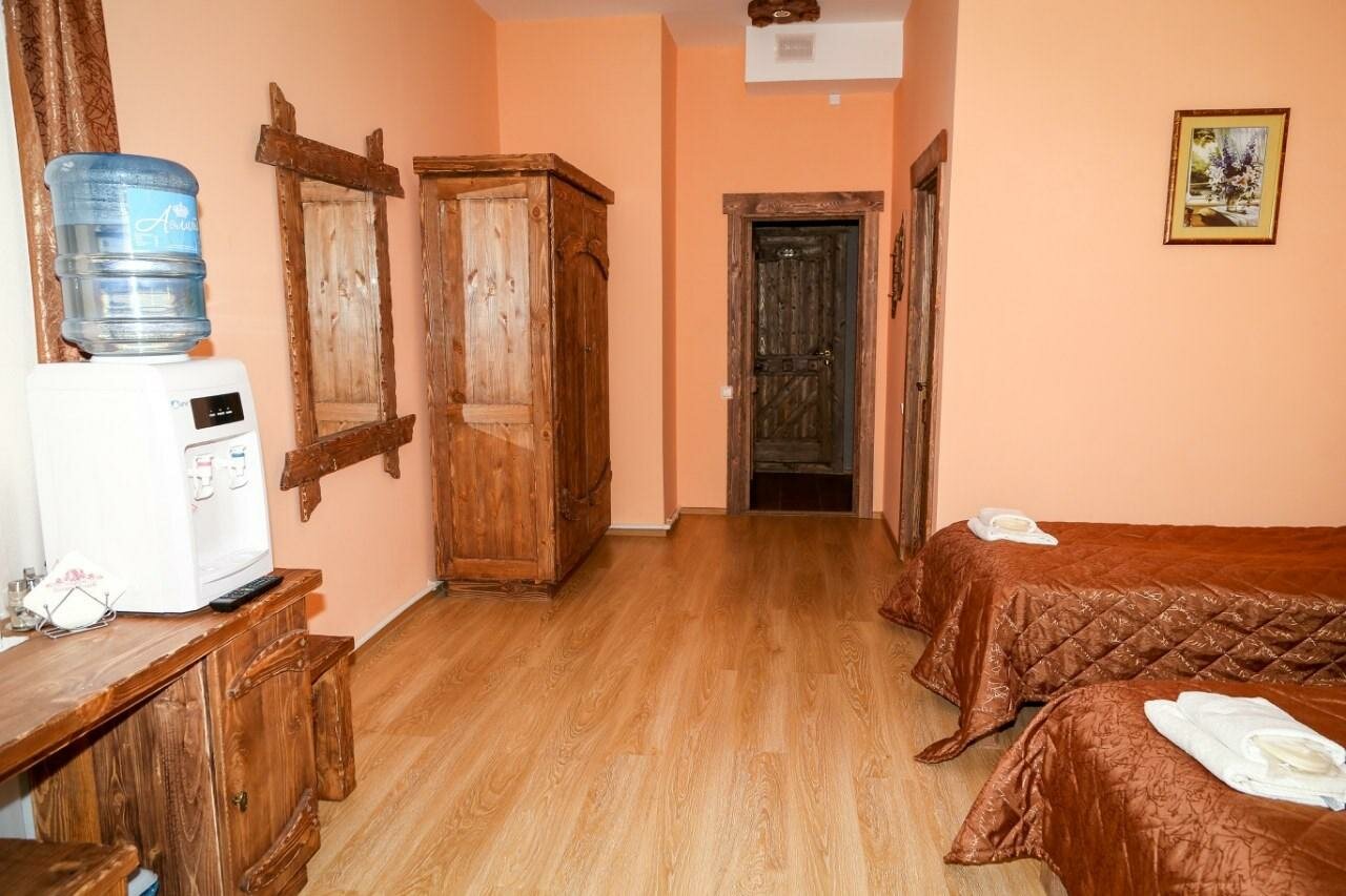 Останавливались на 1 сутки в августе 2023. Прекрасный просторный 3х местный номер. Особенно понравилась мебель из массива дерева. Единственный минус — отсутствие кондиционера в номере, тем более семейном.