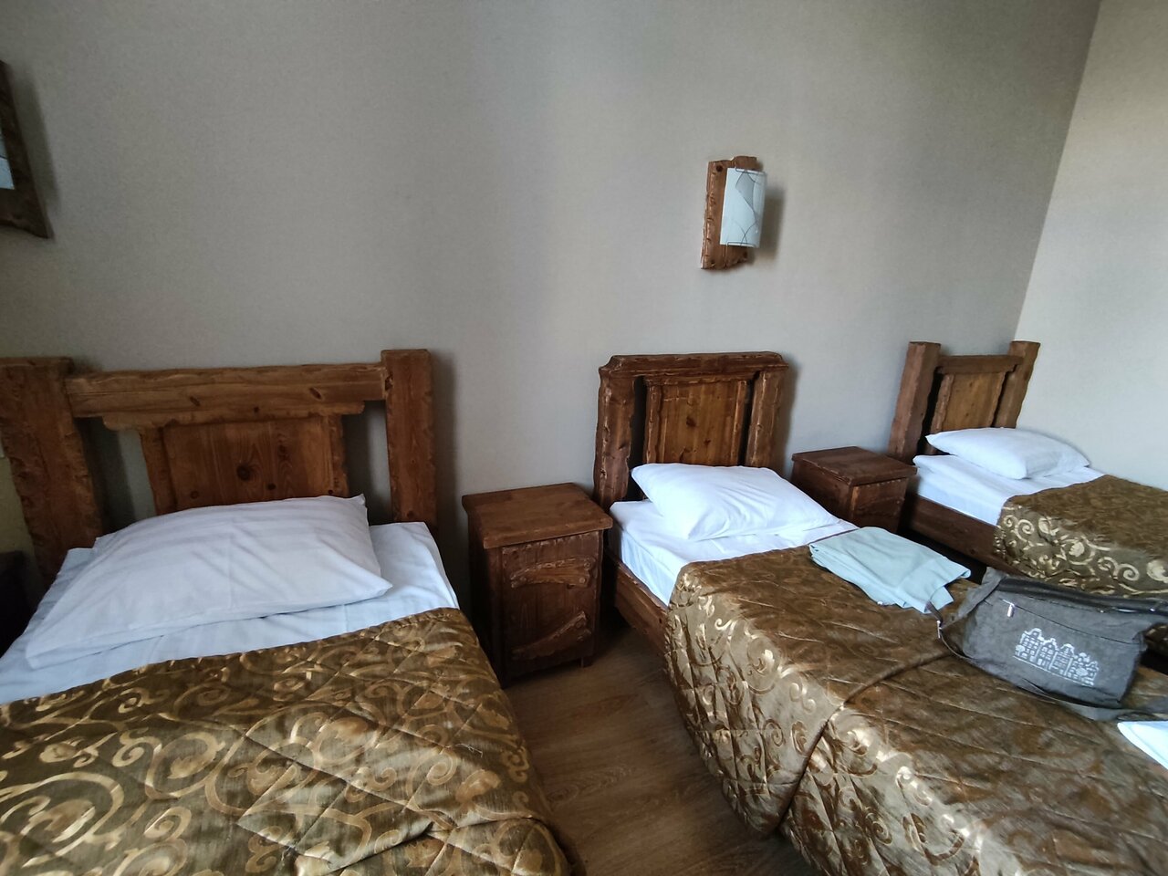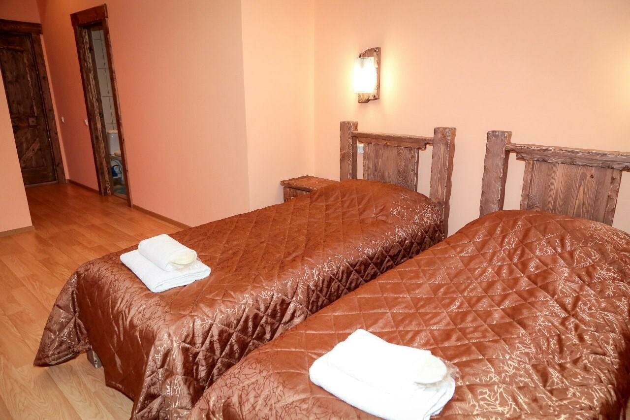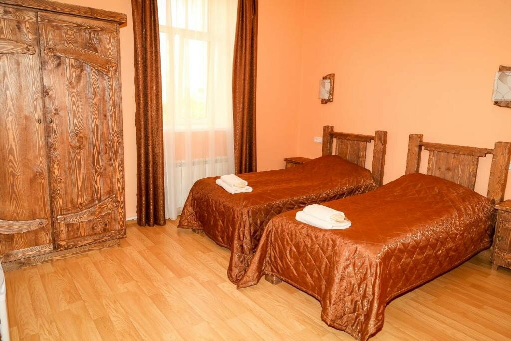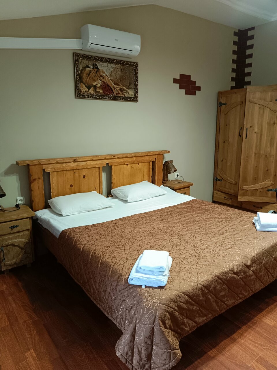 Останавливались на 1 сутки в августе 2023. Прекрасный просторный 3х местный номер. Особенно понравилась мебель из массива дерева. Единственный минус — отсутствие кондиционера в номере, тем более семейном.