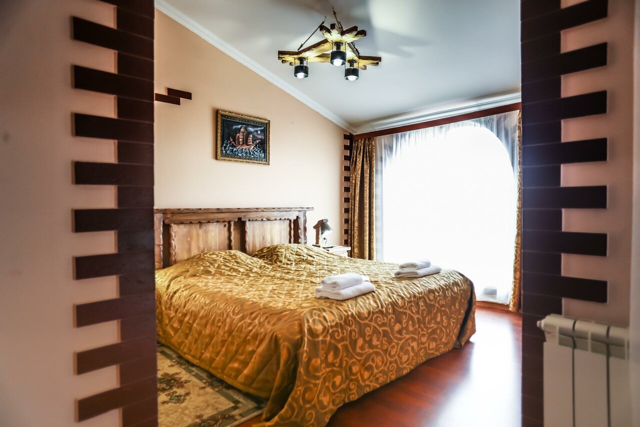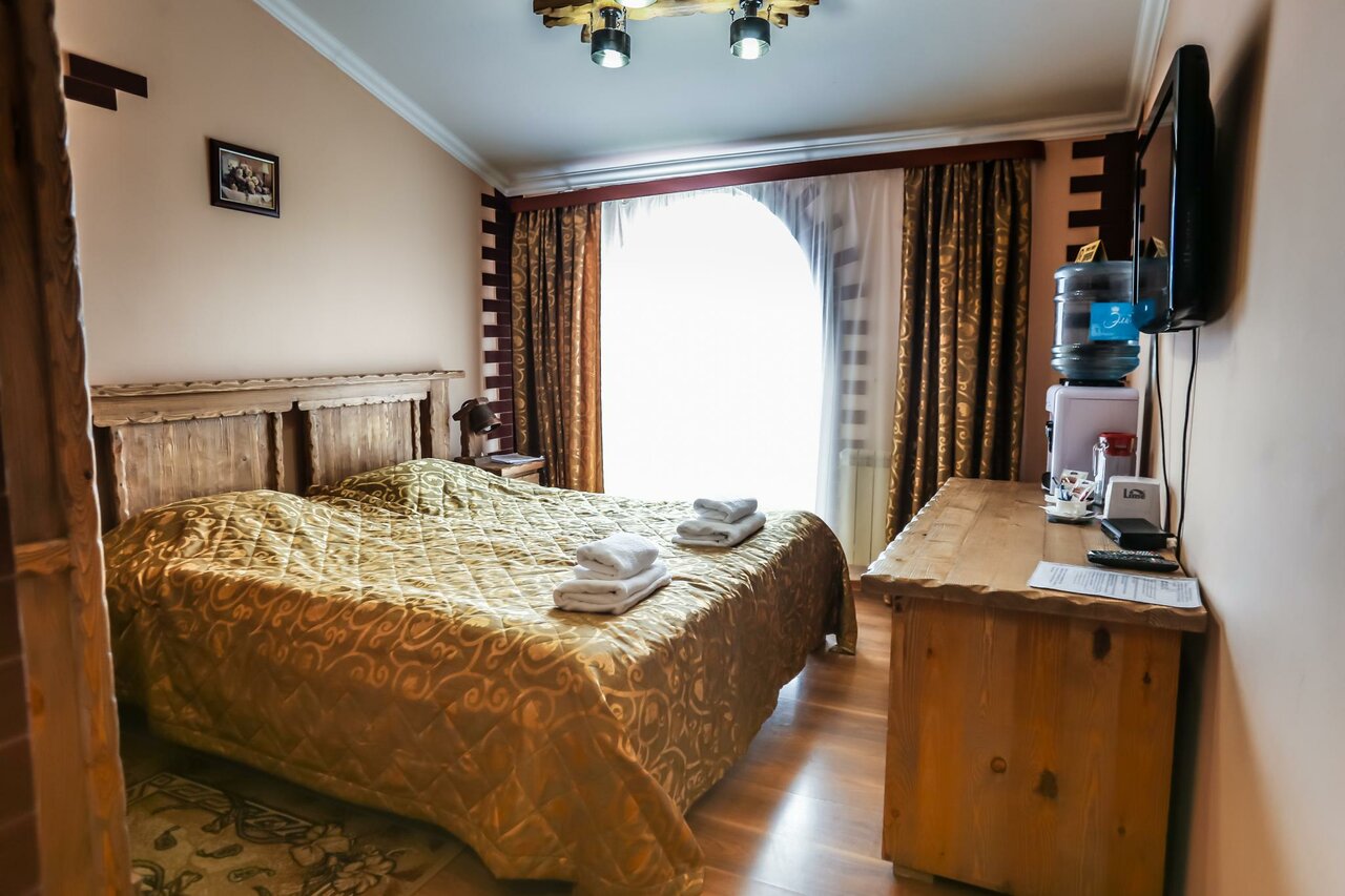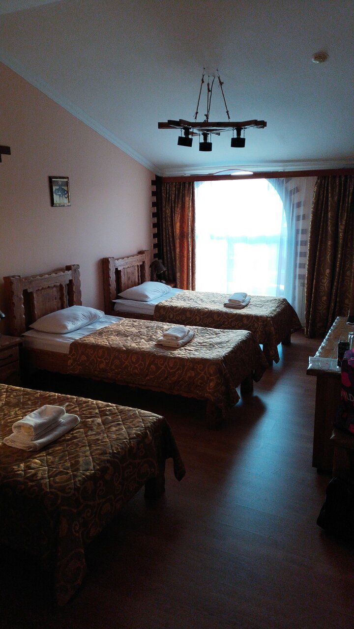 Хороший отель а мне понравился место классное и достаточно интересные домик и просторный номер мягкая кровать телевизор вода прямо номере и завтрак был блинчики