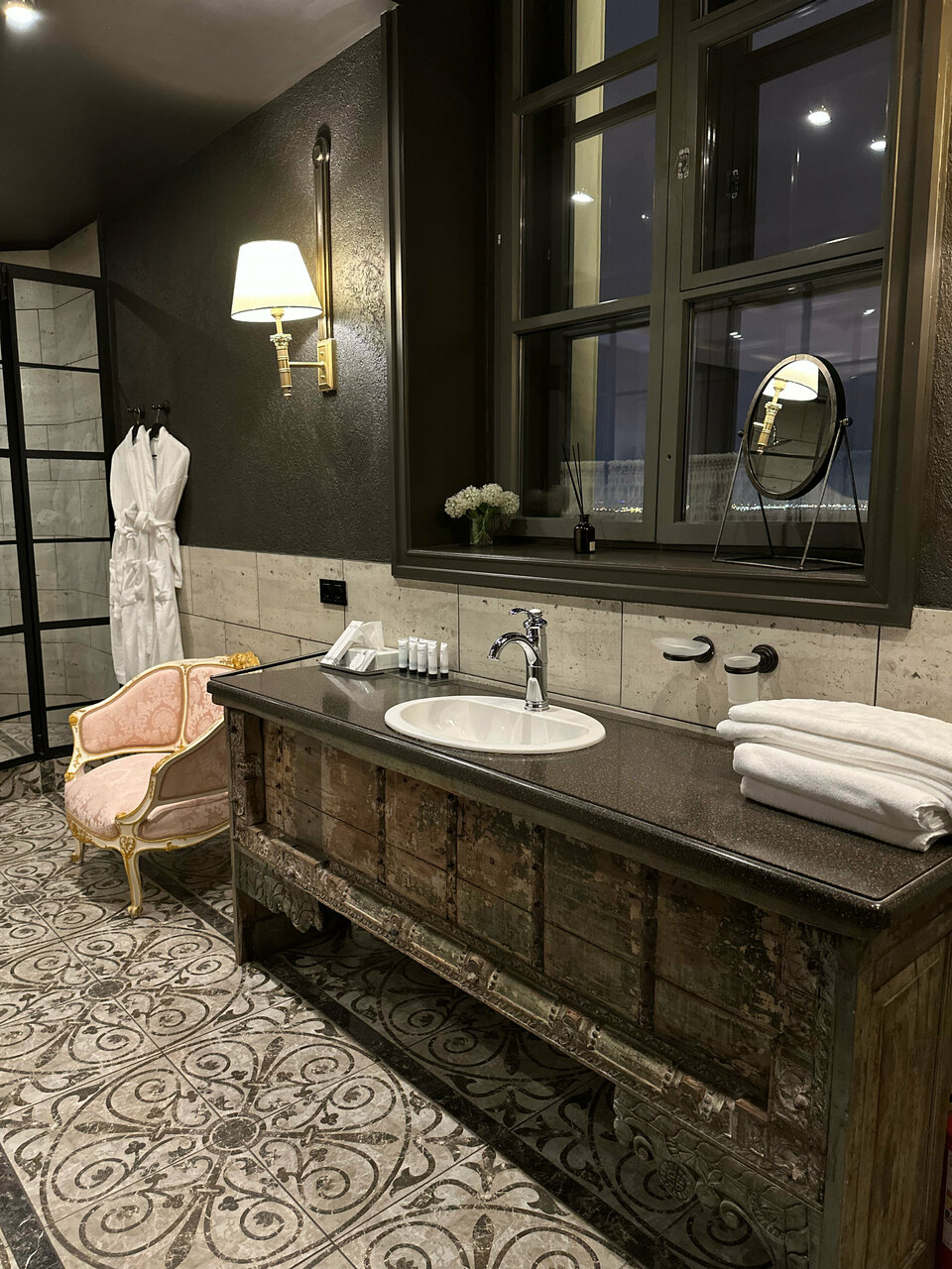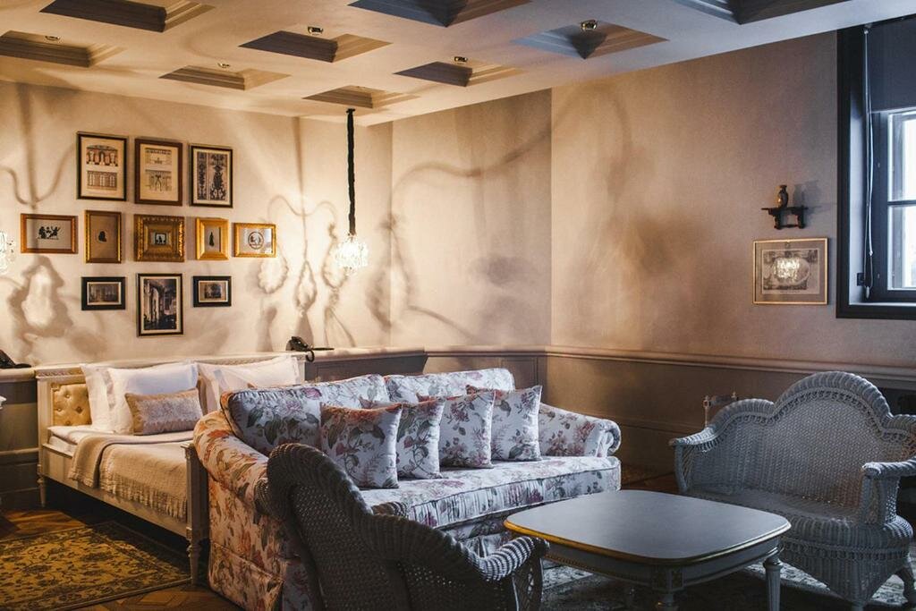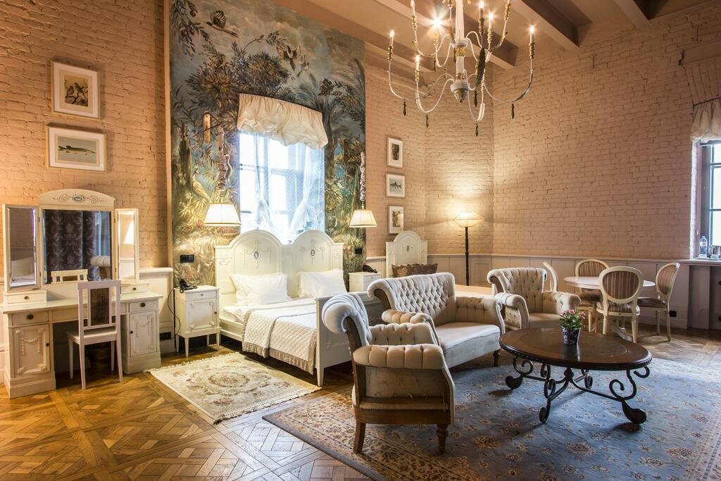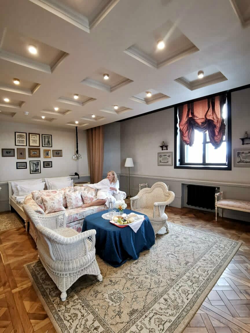 был свадебный номер, собственно перед свадьбой) номер очень красивый, атмосферный, отлично подходит для фотосессий, к сервису тоже вопросов нет, принесли отпариватель, еду, шампанское вопрос только по самому номеру, из минусов: - в душе и в раковине очень плохо не уходит вода - вода нагревается до состояния горячей около минуты - в ванной очень жесткая вентиляция и там прямо холодно в душе - старая мебель, красивая, но прямо старая и с характерным запахом, если открыть дверцы, если вдруг есть аллергия, может быть тяжело ( но все неприятности плюсы перебивают и место очень атмосферное