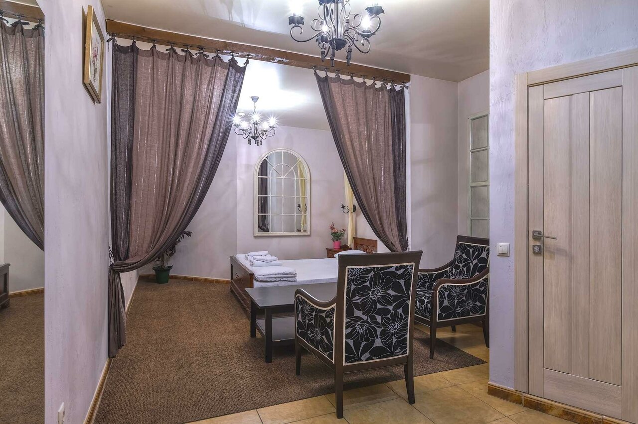 Услуги: — Проживание от 3500 ₽/ночь, включая отель на час. — Размещение с животными, номера для некурящих. — Парковка, сауна, баня, SPA, салон красоты. — Завтрак по меню, круглосуточная стойка регистрации.
