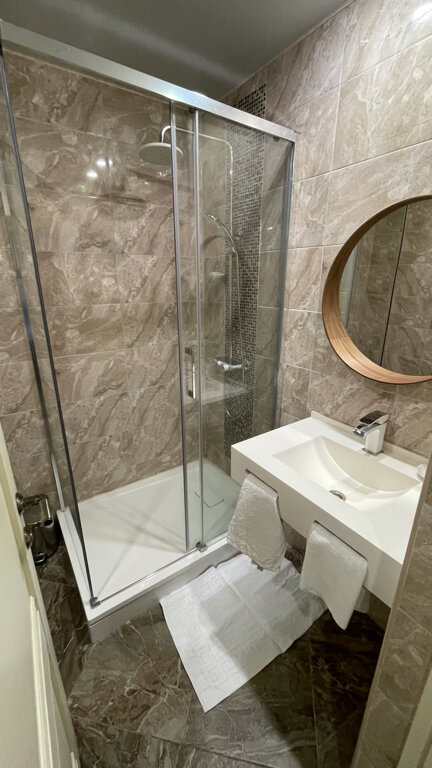 Номер 24 м.кв., оснащен: прикроватными тумбочками, индивидуальным светом, двумя зеркалами в пол, мини-холодильником, электрическим чайником, посудой для приготовления чая и кофе, телевизором с плоским, , вентилятор, своя ванная комната с душем.