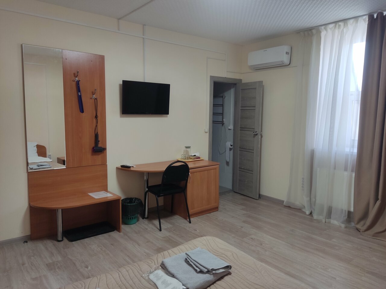 Был проездом в городе, останавливался переночевать. В номере душ, кровать, в холле небольшая кухня, где можно подогреть еду. Всё ок.