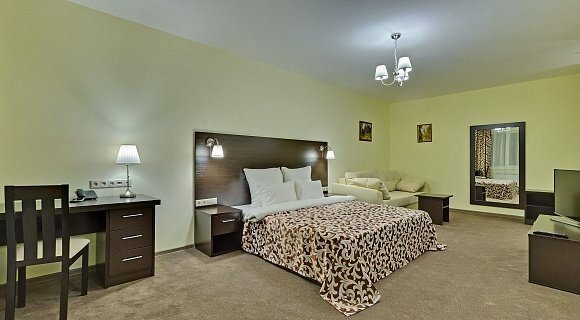 Удобства: — Номера с кухонными уголками, кондиционером, Wi-Fi, звукоизоляцией, гипоаллергенные варианты. — Инфраструктура: бассейн, тренажёрный зал, сауна, хаммам, джакузи, ресторан, кафе, бар, салон красоты, бизнес-центр. — Для отдыха: парк рядом, детский клуб, аниматоры, рыбалка, катание на лыжах, терраса, сад. — Услуги: бесплатные парковка и трансфер, прачечная, химчистка, консьерж-сервис, прокат велосипедов.