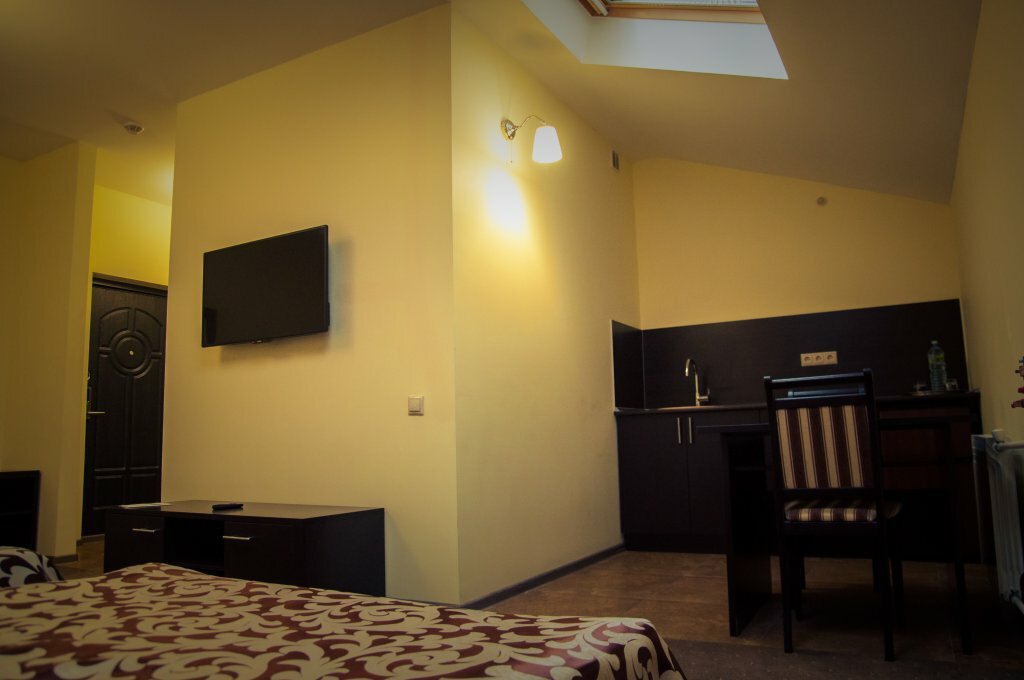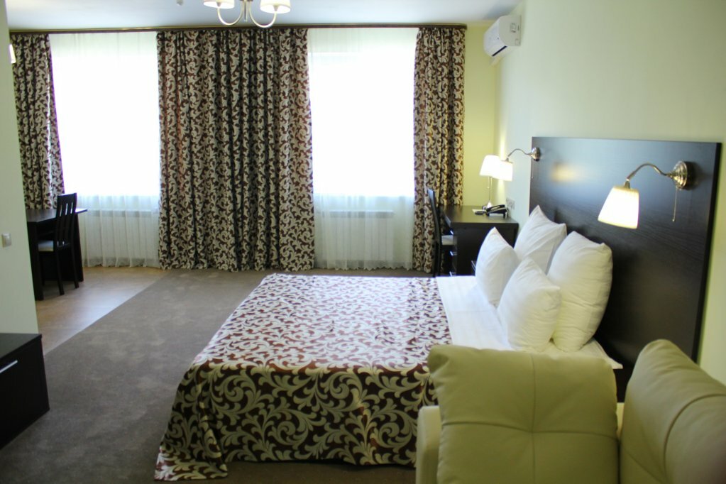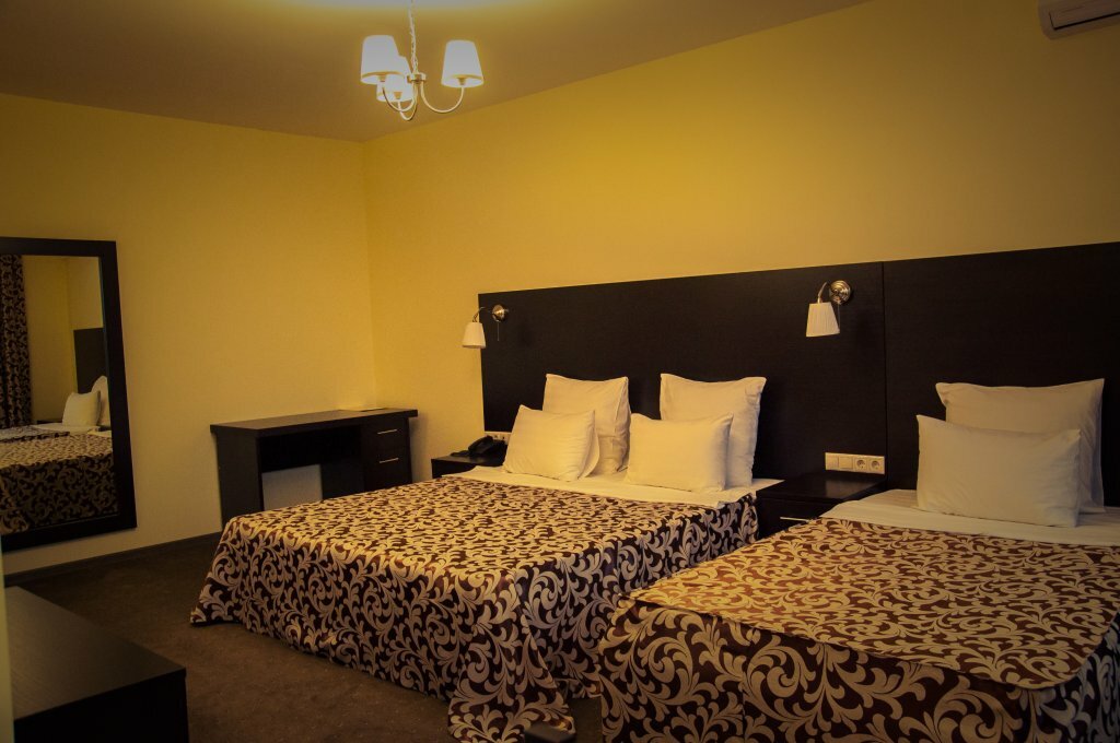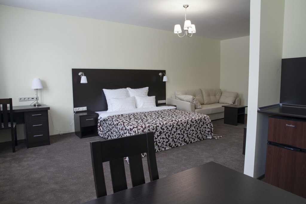 Очень плохие матрасы. Самые дешёвые и самые некомфортный из всех что они могли выбрать . Невозможно и одному выспаться , вдвоём будет бессонная ночь. Плохое качество уборки — в ванной это видно по тому, что осталось явные следы пользования зубной пастой и мылом от предыдущих гостей. Блеска хрома не видно из-за жира и налёта сверху кранов . Грязная раковина . Вобщем с уборкой не утруждаются . Диван не раскладывается . Он кожаный поэтому простынь туда не постелить. Вариант на 1 ночь не более . Персонал доброжелательный . Нет претензий . Можно там останавливаться если сильно необходимо , но долго жить нельзя