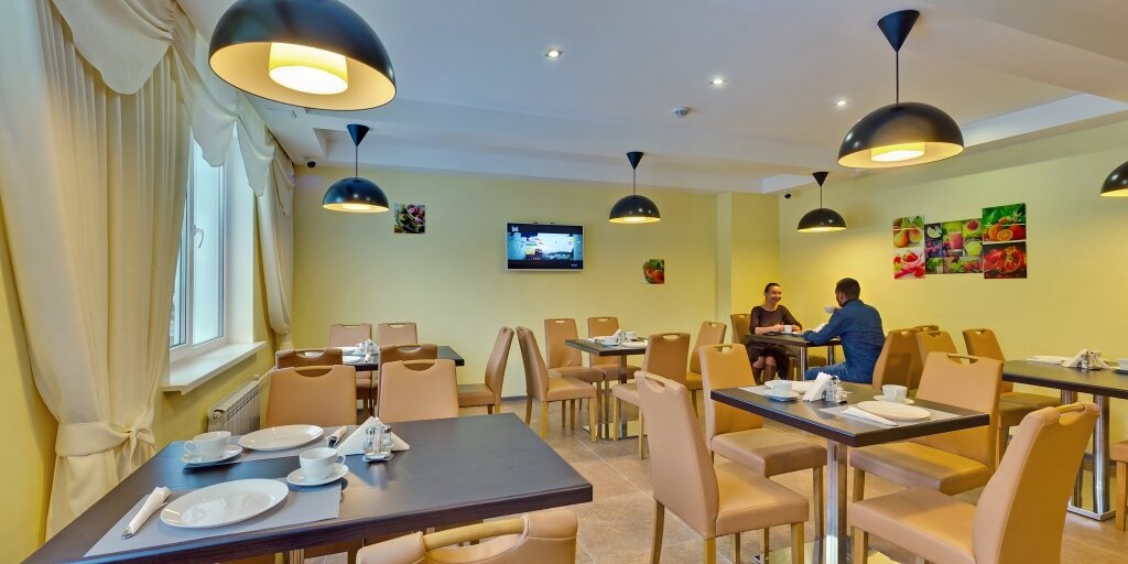 Вкусная недорогая еда в кафе, приветливый персонал. Слышимость из коридора и соседних номеров все портит