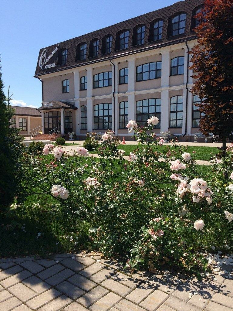 Отличная гостиница! Два корпуса по 3 этажа. Свой ресторан. Готовят вкусно! Завтрак, шведский стол, включен в проживание. Ужин в ресторане — около 1300 руб. Свой бассейн. Домики отдельные для торжеств. Пруд. Фонтан. Парковка чиститс постоянно!