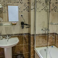 В жизни гостиницы произошли изменения не в лучшую сторону (в номере имеются чайные приборы со следами ‘грязи’; на постельном белье и занавесках имеется пыль, которая при прикосновении распостраняется по всему номеру; кронштейн крепления лейки душа не соответствует самой лейке, мытье становится проблематичным; шампунь в гостинице отсутствует). Существующая система питания оставляет желать лучшего (ограничен выбор; цена некоторых блюд значительно завышена, а качество продуктов низкое).