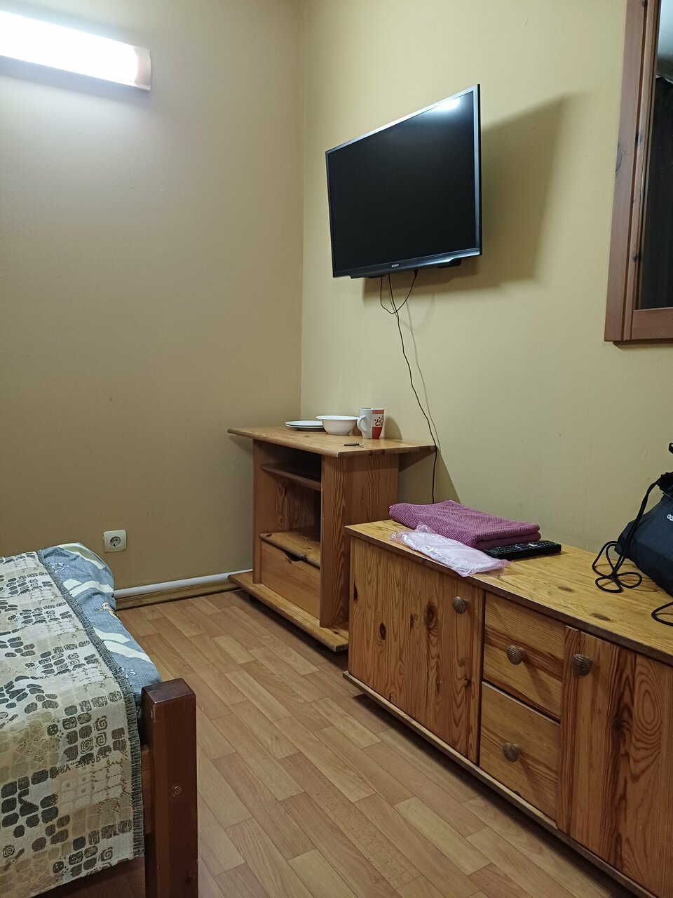Не поверите, отличный матрас ! Тапочки и зубная щётка одноразовая. Правда это все по 1 на 2 гостей, но оно есть. Выспались, душ норм, чисто. Спасибо!