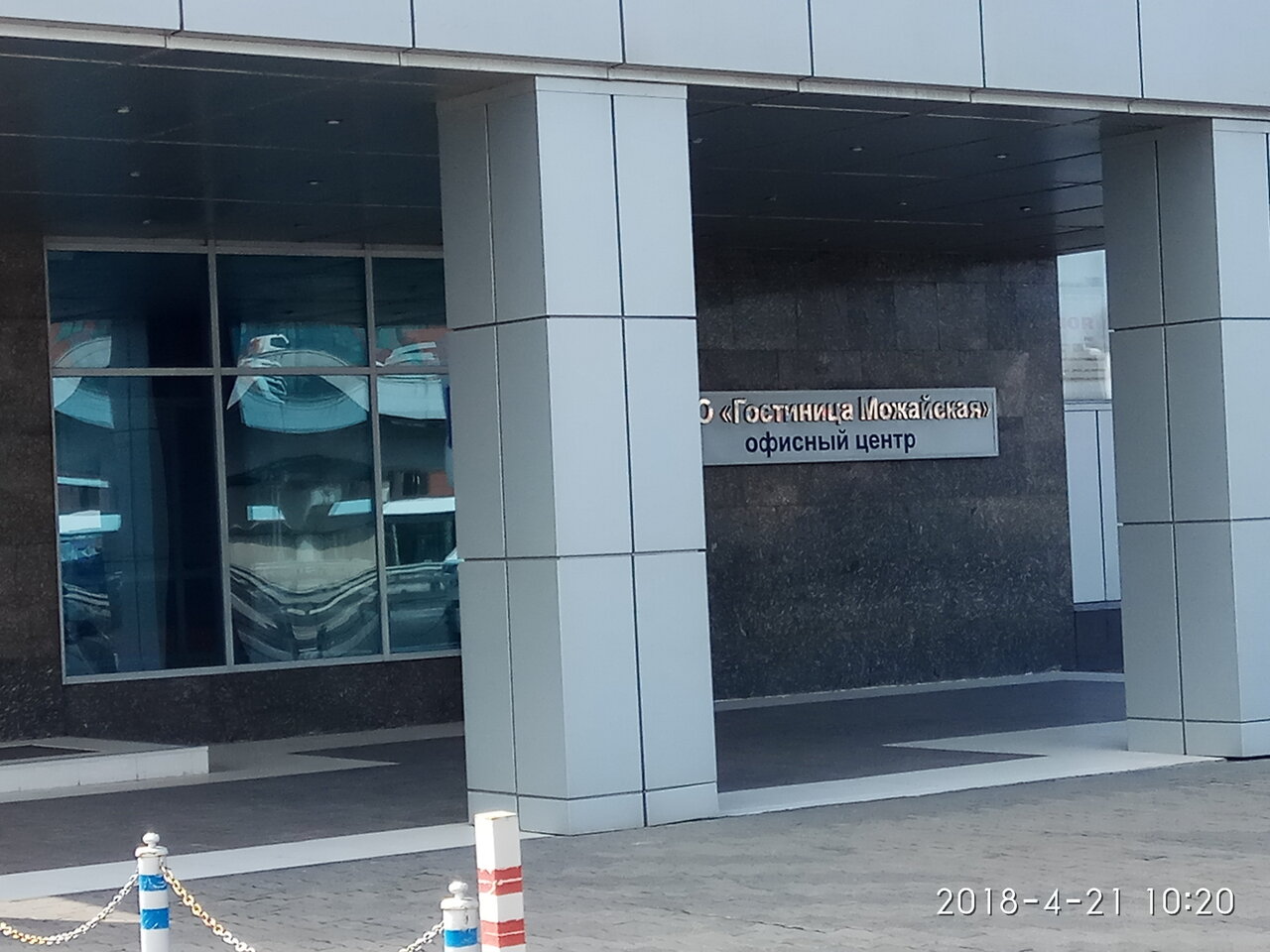 Не бизнес-центр это, а какой-то старый совковый отель. Собственно, сбоку он и остался — мотель Можайский. Качество услуг соответствующее. На каршеринге приехать нельзя. Нет зоны завершения аренды. Общественным транспортом сюда вообще убиться ехать. На своей машине надо знать, как въезжать. Потому что если не знаешь, нет ни одного указателя. А догадаться, что надо проехать через заправку — не самое очевидное.