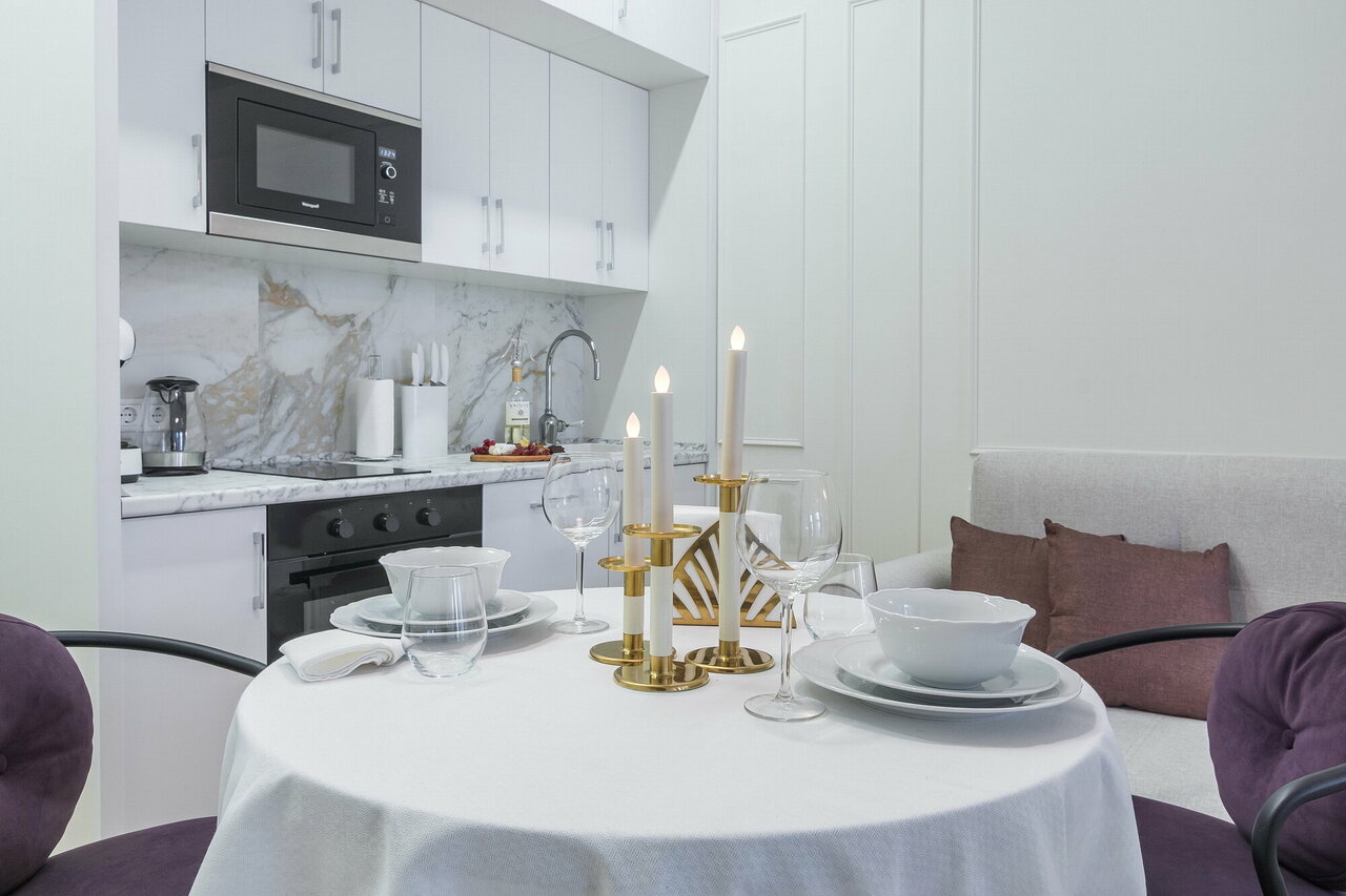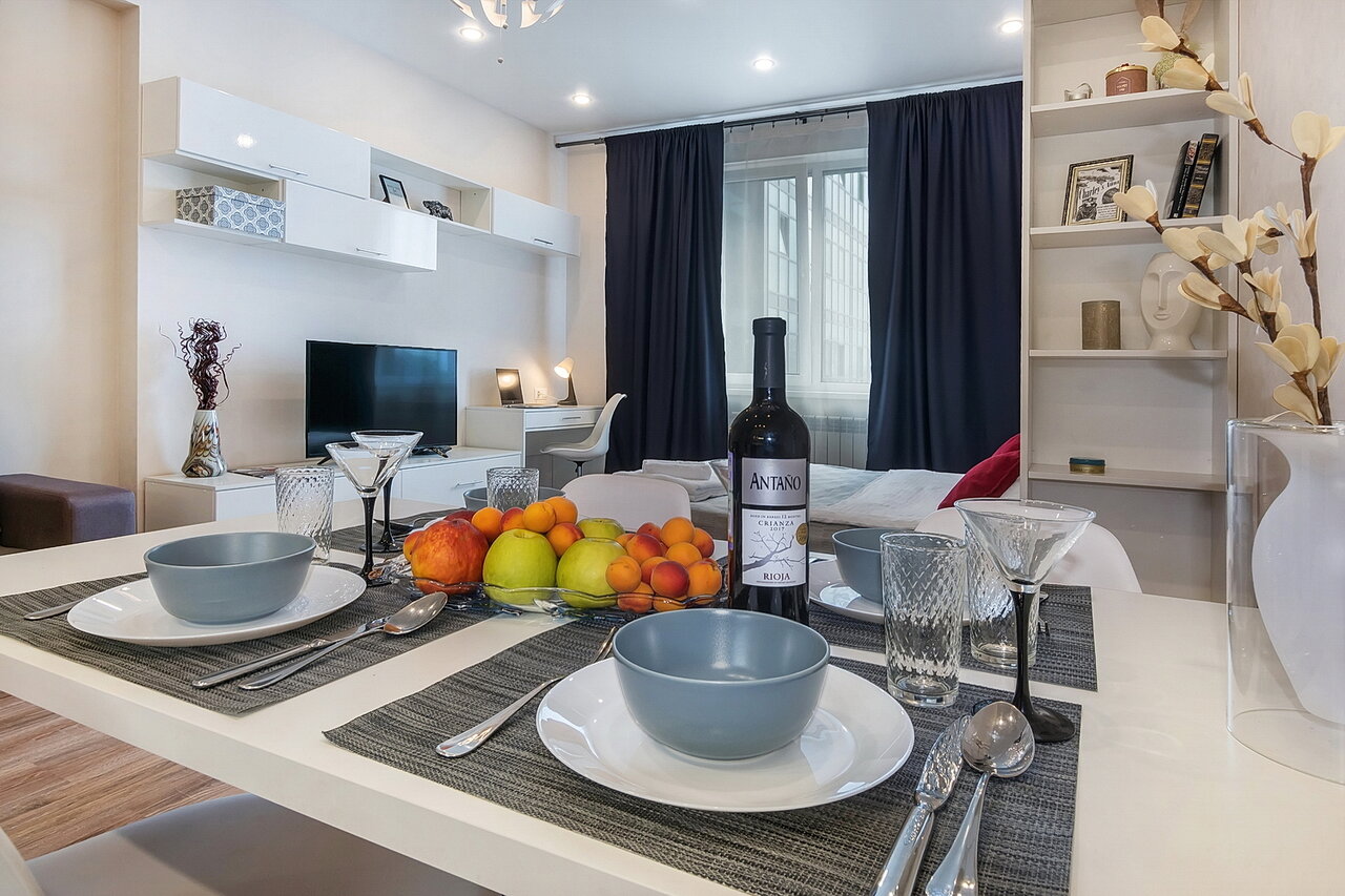 Хорошее место, очень удобно ехать до Сколково. Сами апартаменты чистые, свежие, приятные. Мебель простая, но всё гармонично. Что бы доработал: вайфай подключался, но, фактически, не работал. Хорошо, в этом месте лте прекрасно работает. Не хватает больших чашек для чая. Не было доп. белья застелить диван. Непонятно, есть ли там 35 кв м. По ощущениям, меньше. В остальном всё отлично: парковка, вид из окна интересный, уличный шум не слышно. Заселили раньше на полчаса, сами связались, выслали все инструкции в ватсап, очень удобно