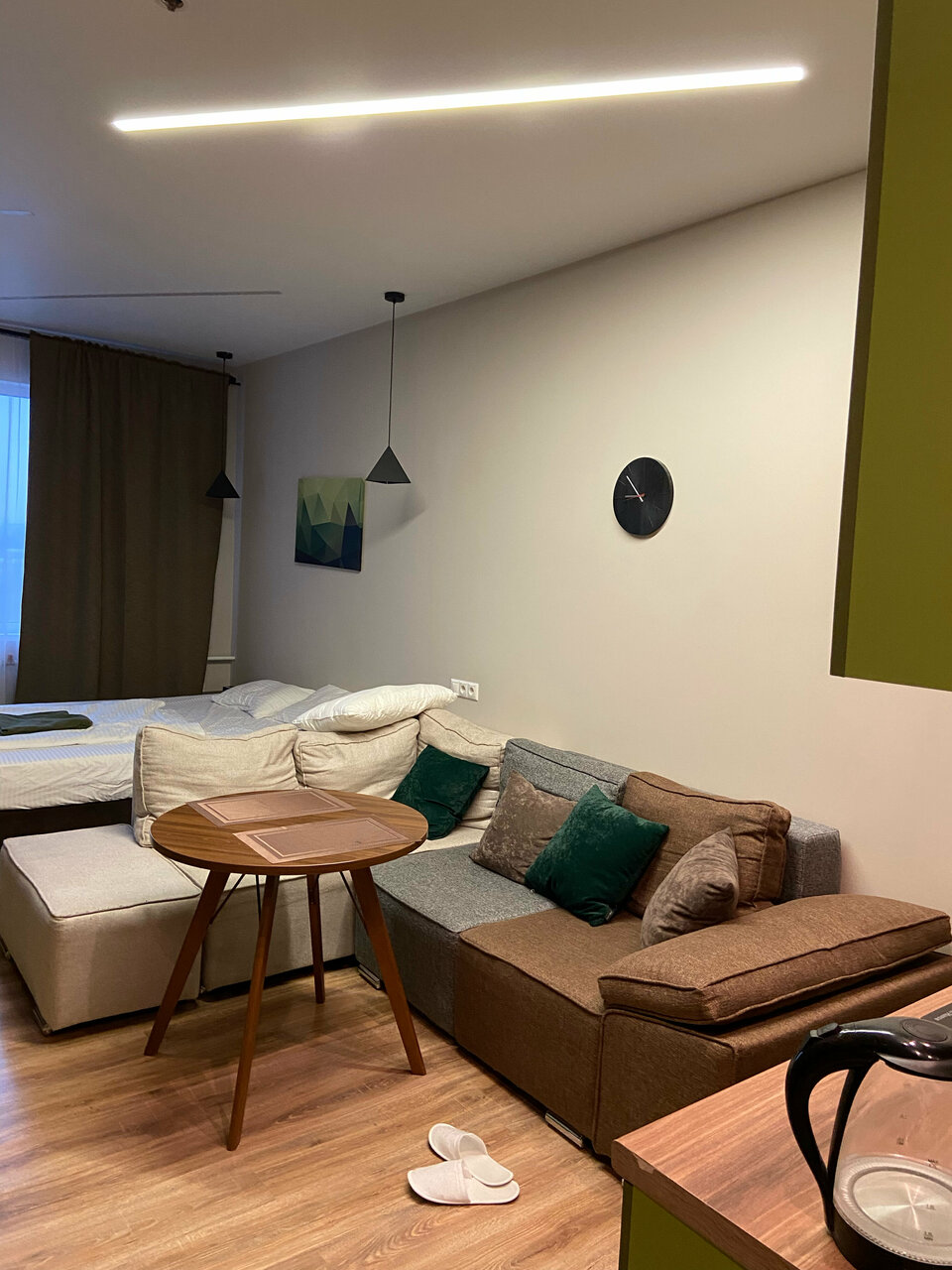 Бываю здесь часто по работе. Останавливаюсь только здесь. Удобное бесконтактное заселение в любое время (ключ находится в сейфе около двери). перед заездом нужно оплатить залог. Его возвращают в течение дня после выезда. Был в разных номерах. Все номера отличные. Очень удобные правильные матрасы. У них появился новый номер Люкс Голд. Он чуть подороже, но денег своих однозначно стоит. шикарный огромный телевизор. Как в кинотеатре. Панорамное окно от пола до потолка. В номере Грей тоже огромный тв. Очень уютный интерьер во всех апартаментах. Все, что нужно есть. Все идеально чисто. Приветливая администратор Виктория всегда на связи. Всегда поможет по всем вопросам.