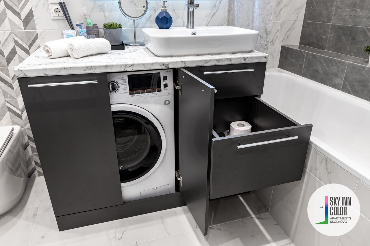 - Наличие всей необходимой техники (стиральная машина, кофемашина, посудомоечная машина).