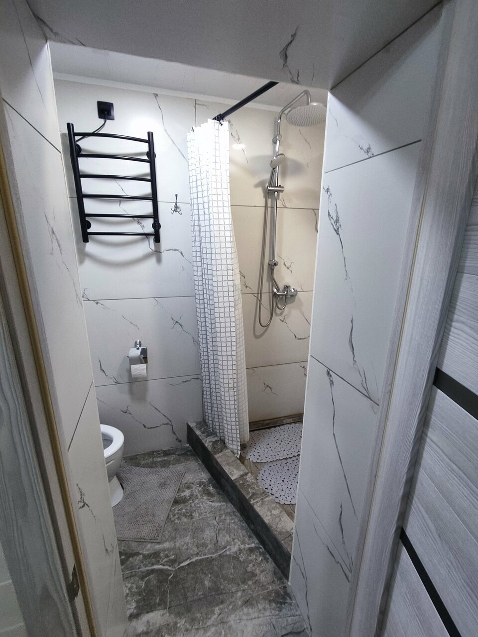 - Хорошее оснащение (Wi-Fi, кондиционер, холодильник, микроволновка, душевая).